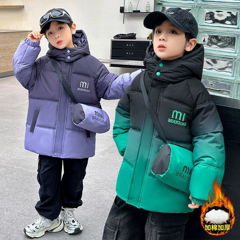 男童冬季渐变羽绒棉服2025新款中长款加绒中大童加厚保暖棉袄帅气