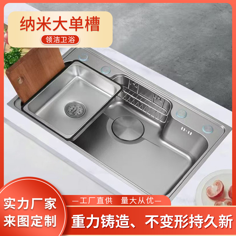 台所304ステンレス水槽3d米粒ナノ防汚日本式大単槽野菜洗面器家庭用皿洗い池