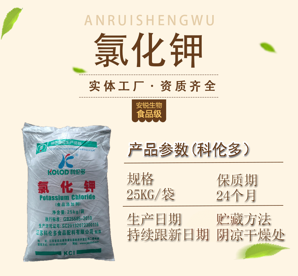 氯化钾 科伦多 食品级 营养强化剂 水产养殖饲料 凝胶剂 微量元素