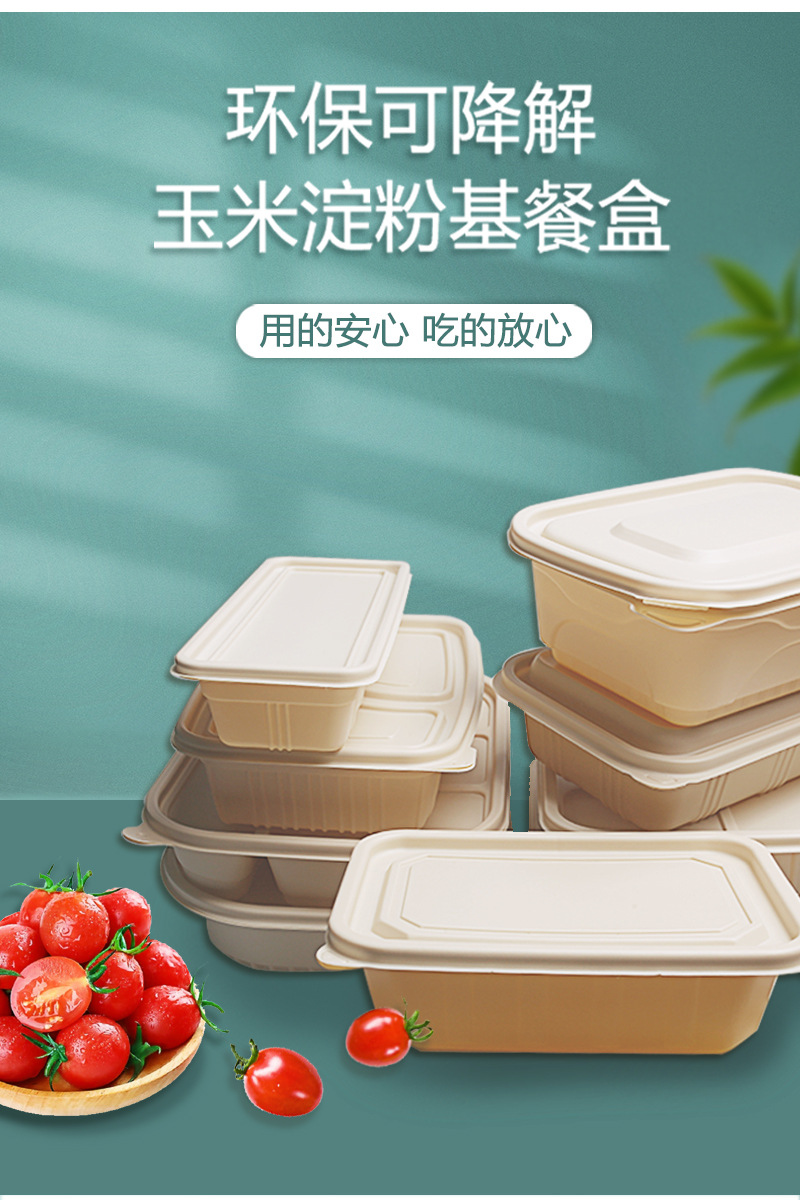 トウモロコシ澱粉使い捨て弁当箱 生分解性弁当箱 厚手ファーストフードテイクアウト用包装箱 丸型ボウル 長方形仕切り付き