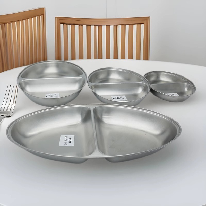 2格のステンレスの味皿の食器の食器の食堂は格の料理の皿の双格の骨の皿の食堂の料理の皿を分けます