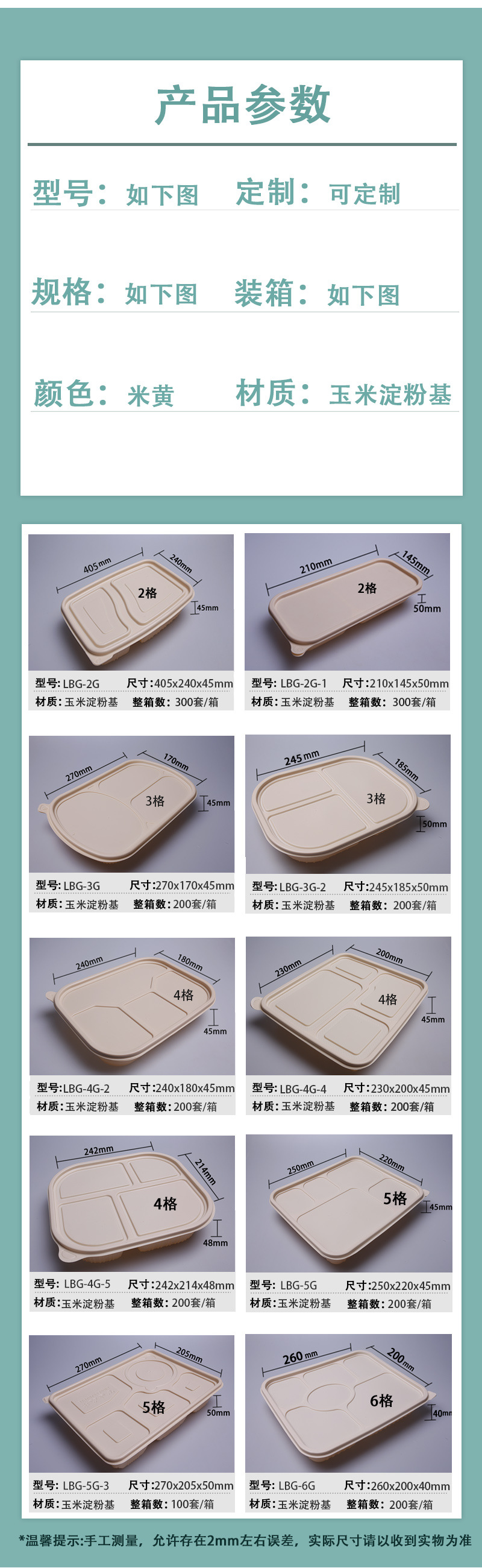 メーカー使い捨てのトウモロコシのデンプンの弁当箱の弁当箱は分解できます。
