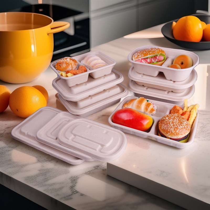 国境を越えた使い捨てパルプ弁当箱環境保護分解性弁当箱多格皿分格多格出前包装箱