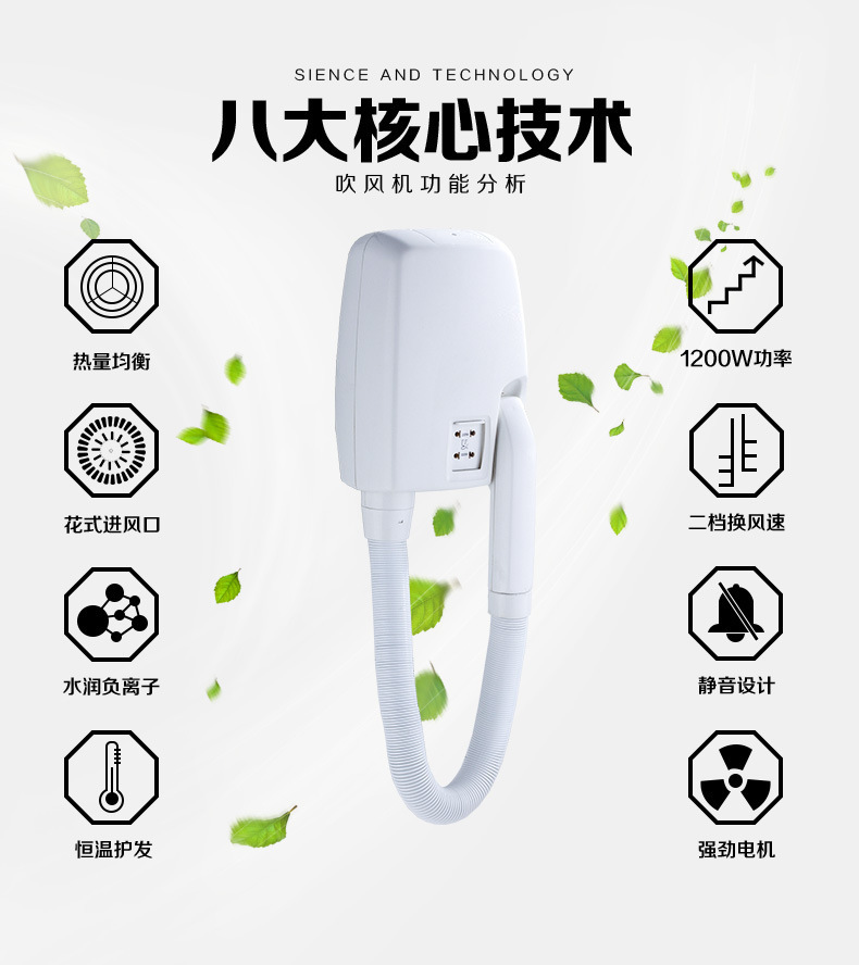 亿达斯酒店宾馆电吹风机干发器电吹风酒店墙壁壁挂式吹风机