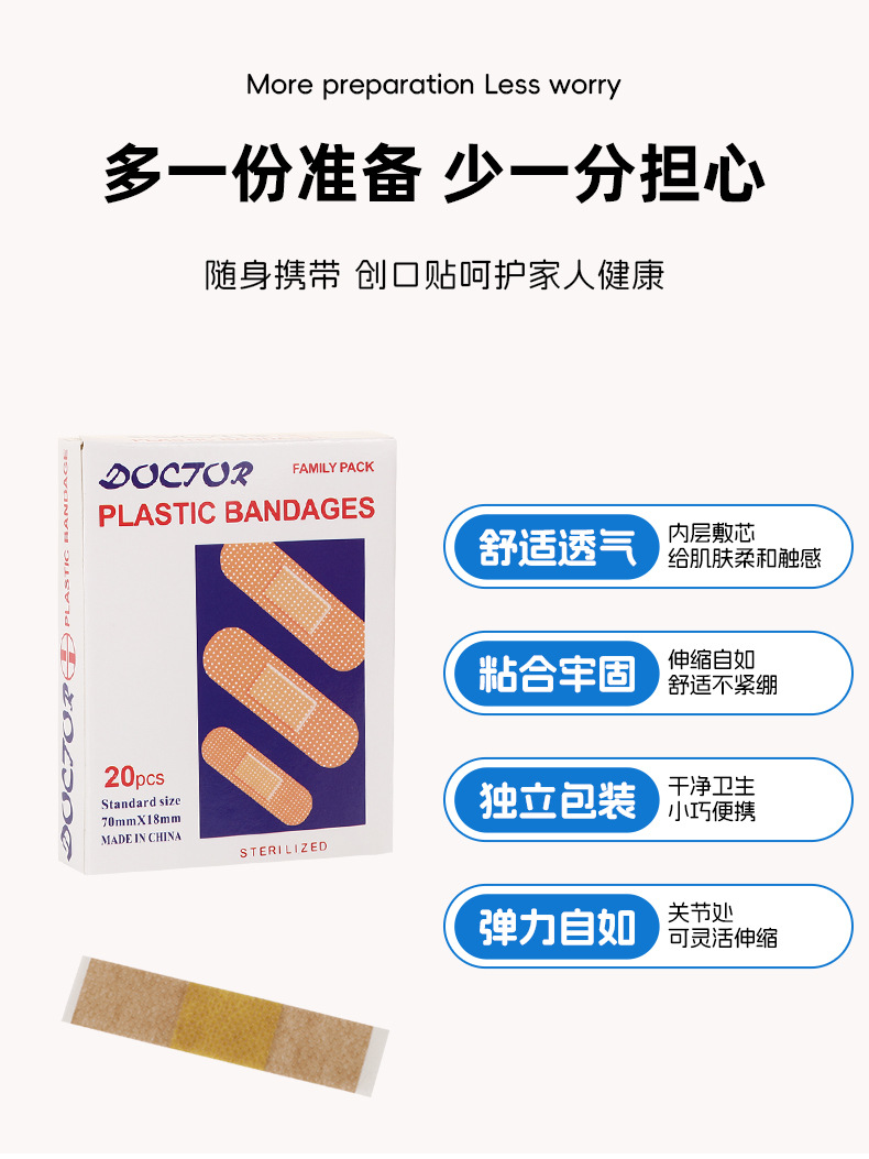 通気性不織布傷口貼付対外貿易20枚入り使い捨て絆創膏家庭用耐摩耗性傷口看護止血貼付