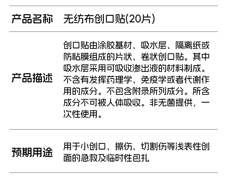 外国貿易英語不織布傷口貼付使い捨て止血看護絆創膏20枚家庭用傷口貼付布