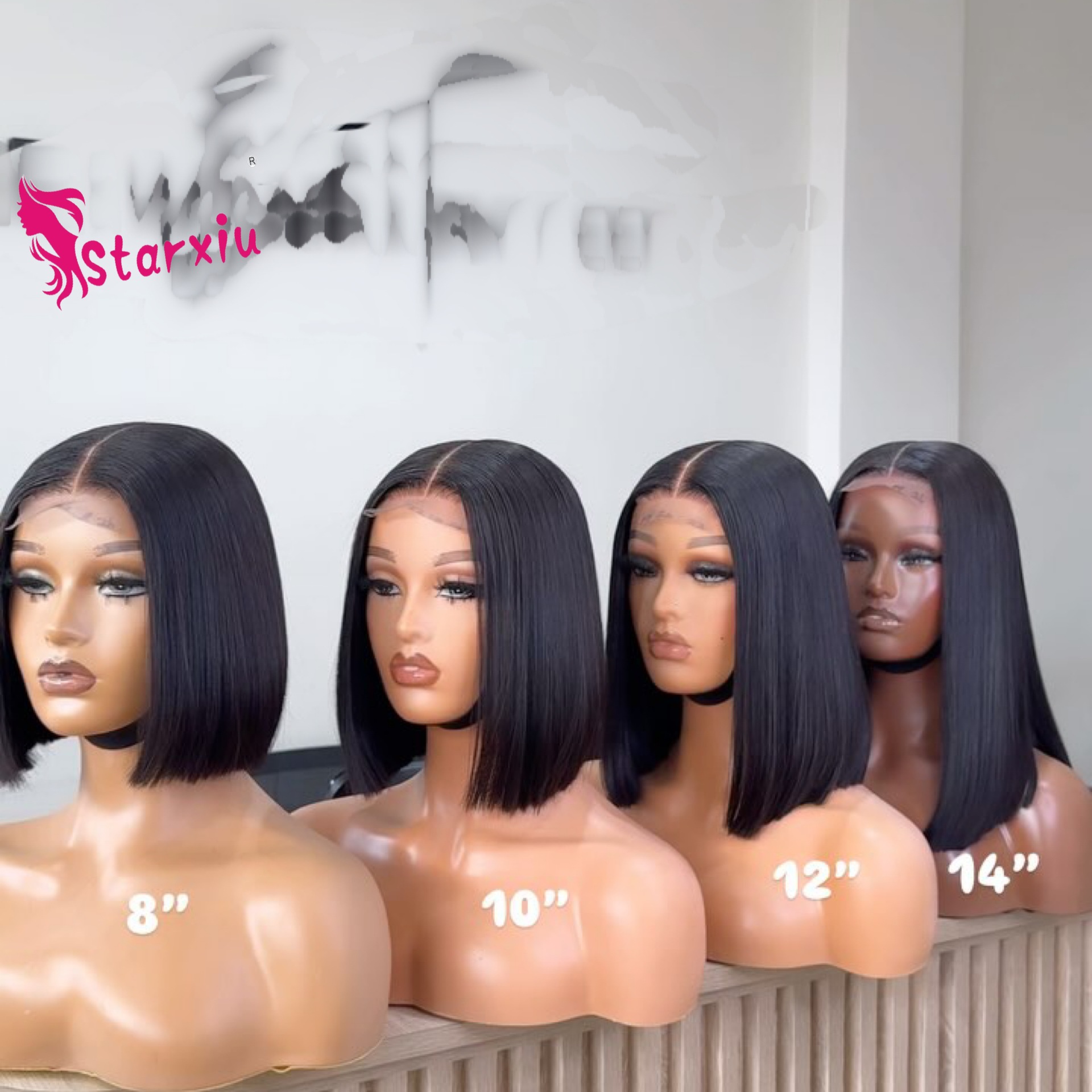 10aストレイトボブ13*4フロンティアレースワイグ・ブラザリアン・ヒューマン・ヘア