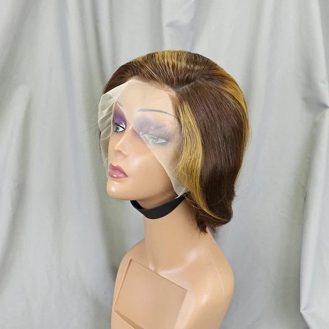 12Aジェリーキューリーボブブライトリアンヒューマンヘア13*4フロンティアウィッグ