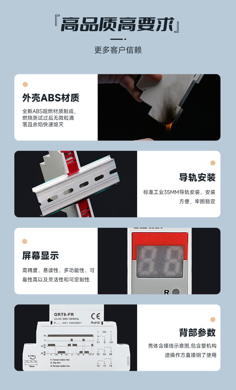 電源投入後遅延して電動機を遮断するタイムリレーは、AC220Vをサポートし、NTE8自動の代わりに調整可能なスイッチです。