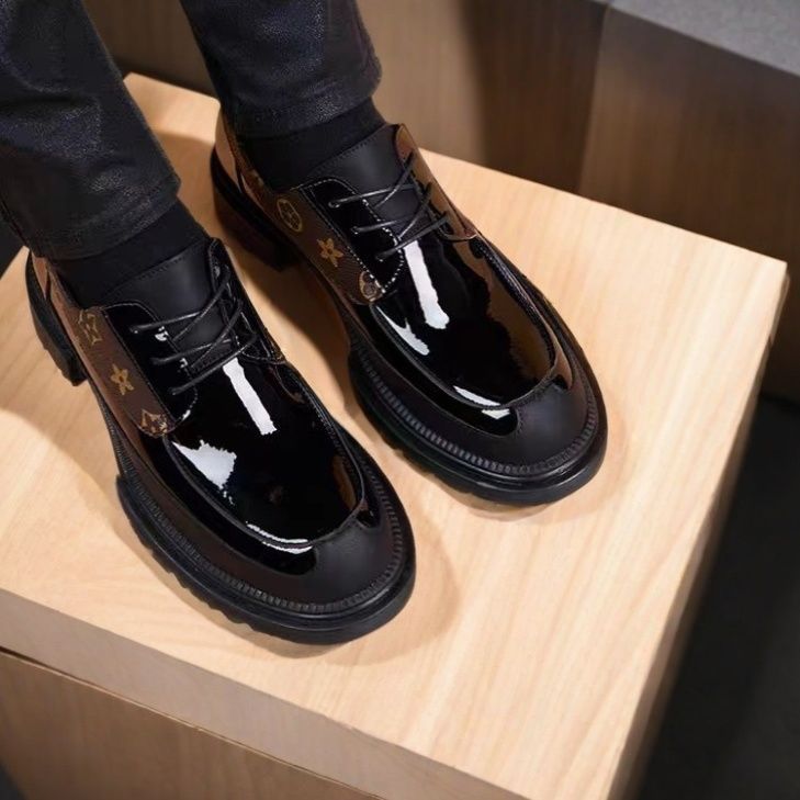 2025 英国スタイルのビジネス厚底ローファー男性若者光沢のあるカジュアル革靴韓国スタイルのファッション小さな革靴