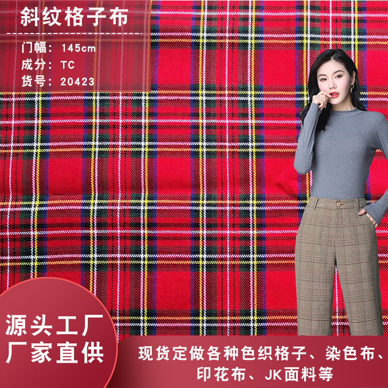 現物色織りポリエステル綿スコットランド格子布制服格子生地クリスマス格子生地クロスボーダー起爆生地