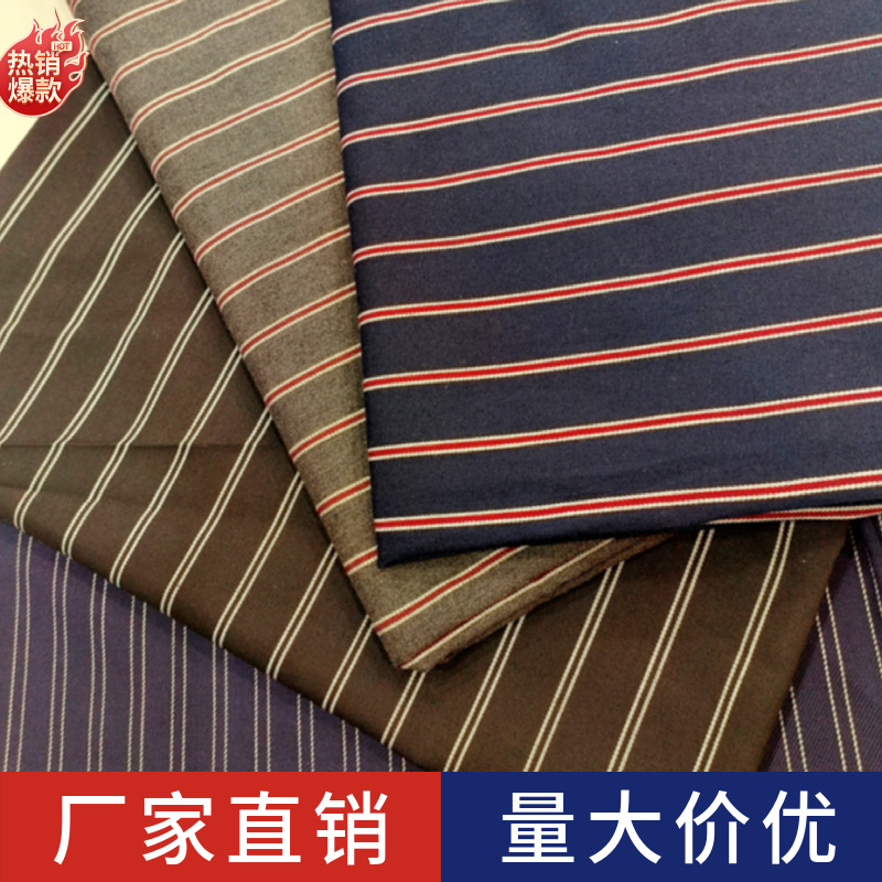 布帛の色のポリエステルの小さい弾力のストライプの布の男女のシャツのスーツのベストのズボンの靴の生地の現物の卸売り