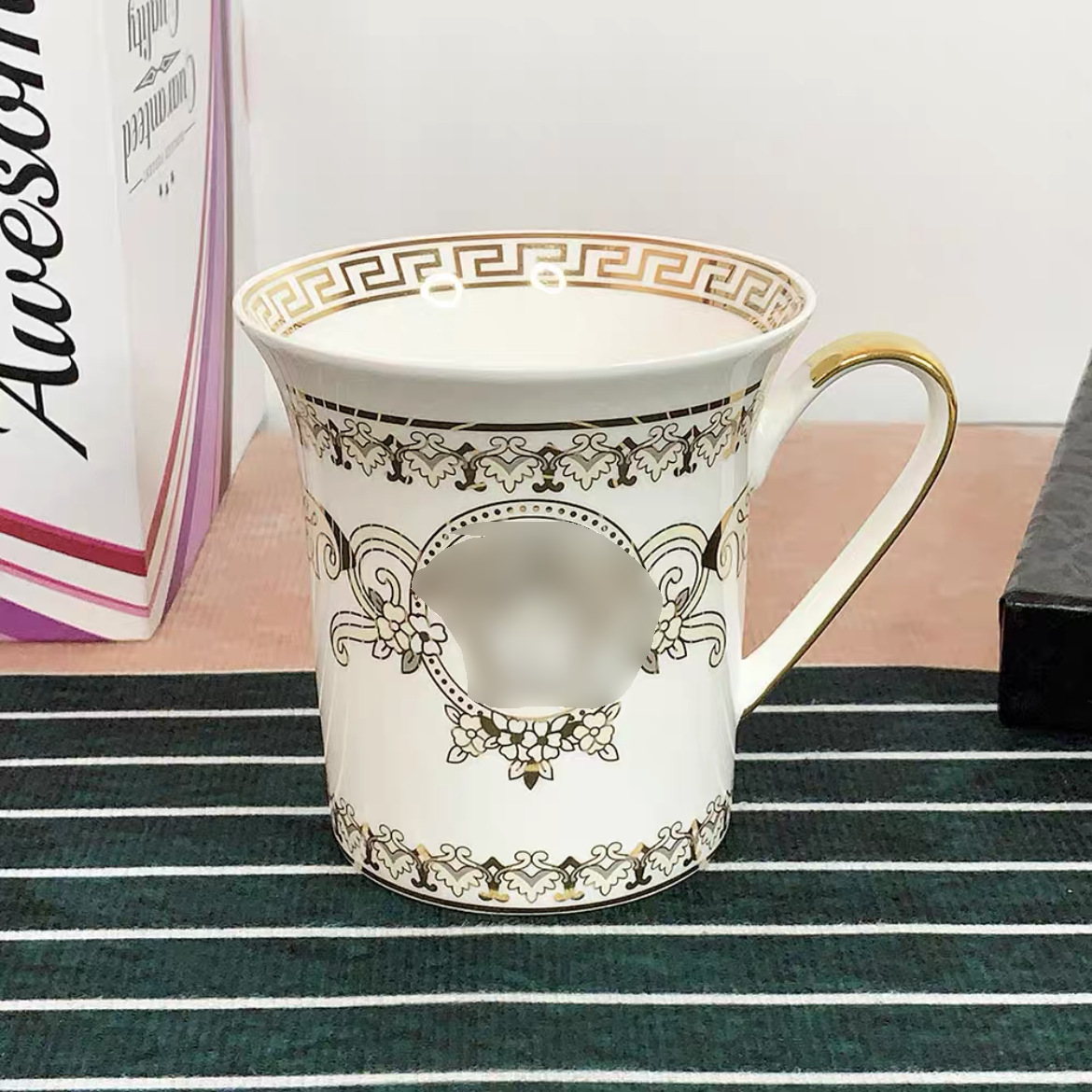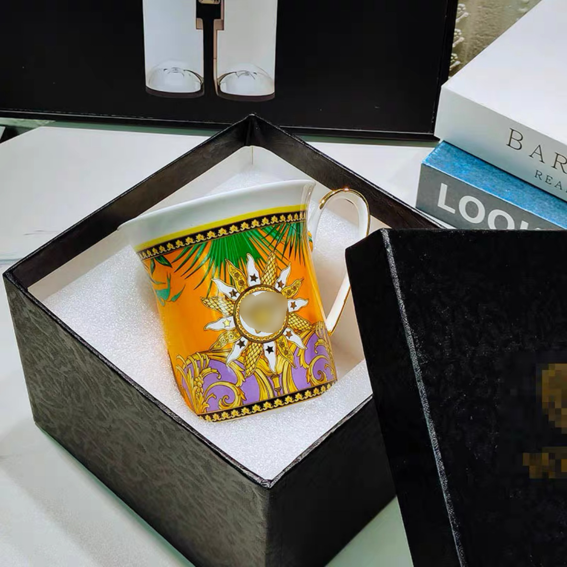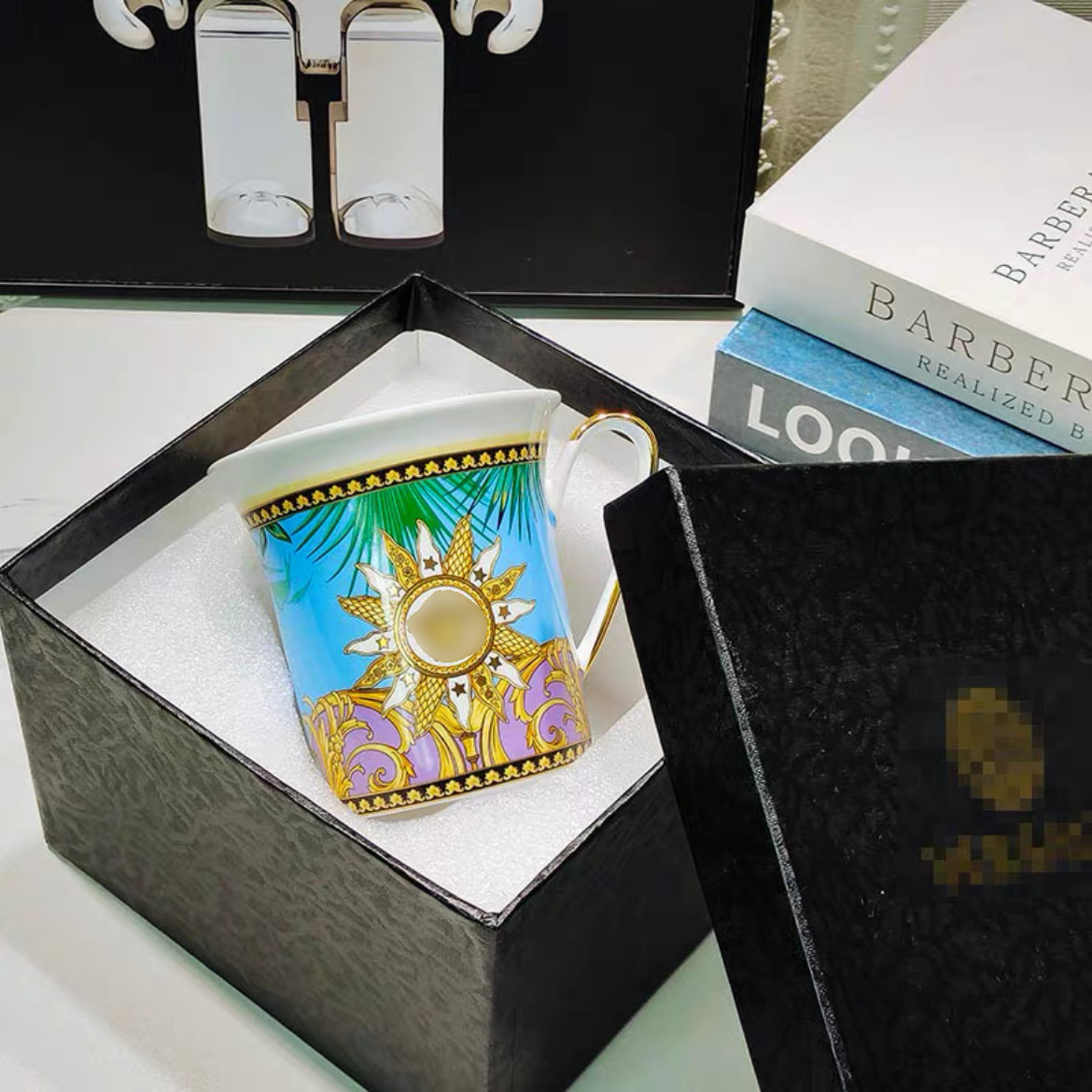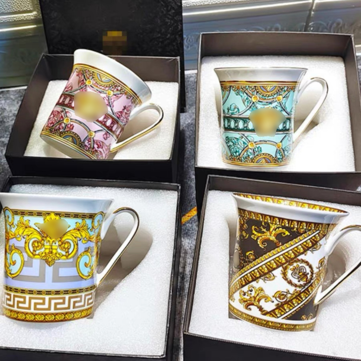 ヨーロッパ式のシンプルなブランドのマグカップの牛乳カップの朝食カップのモザイクの陶磁器の高級な精巧な骨の磁器のh家の礼箱
