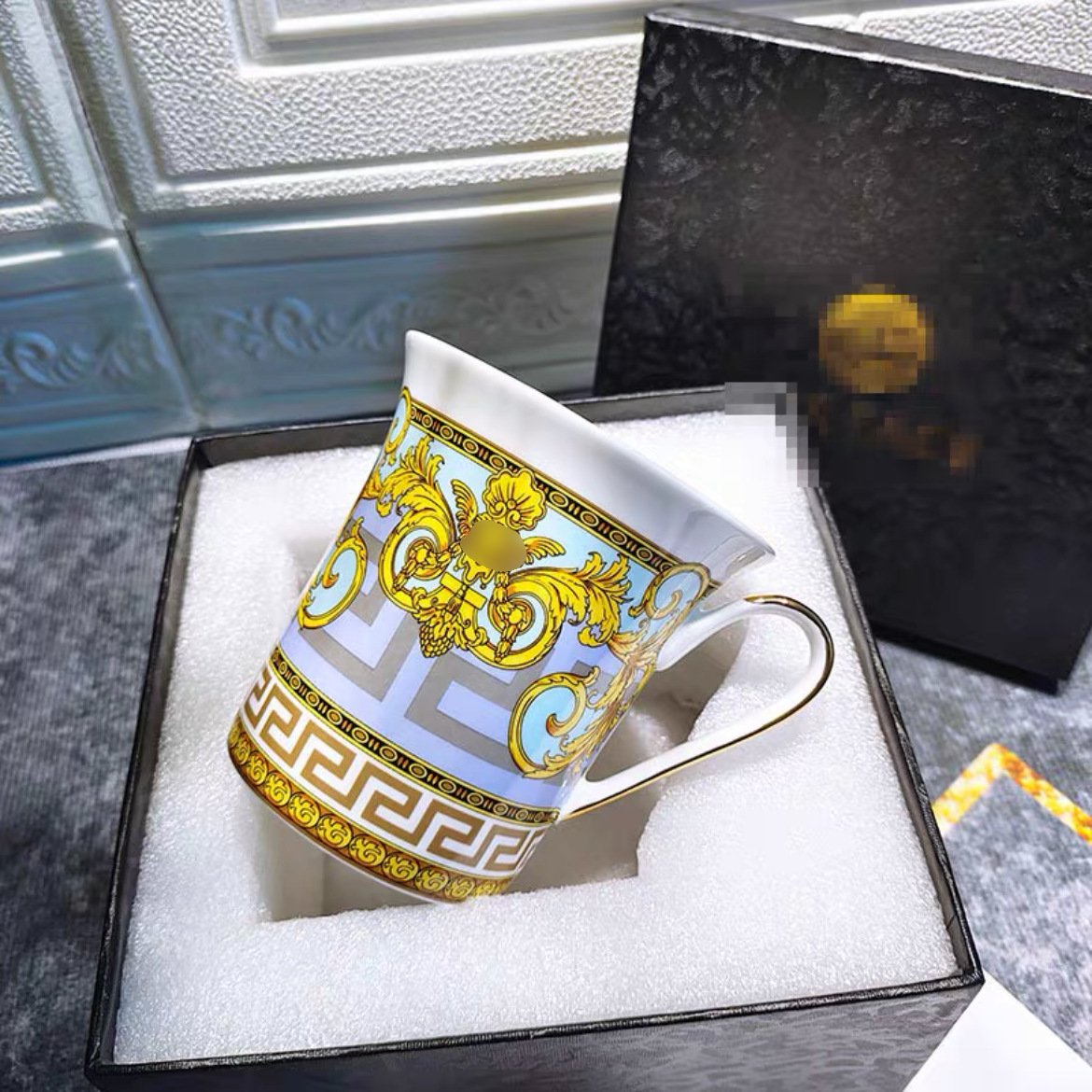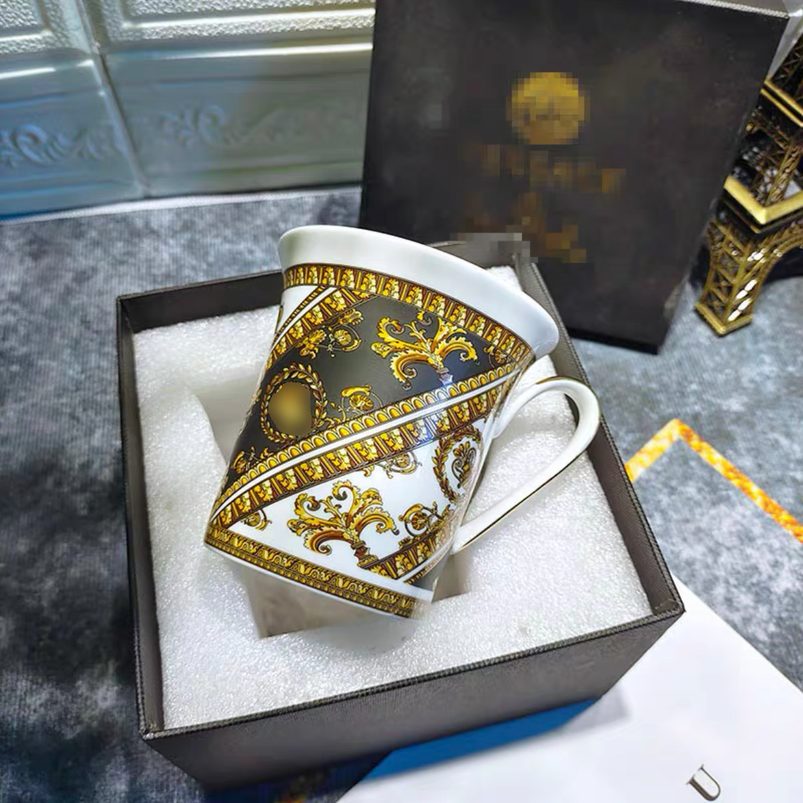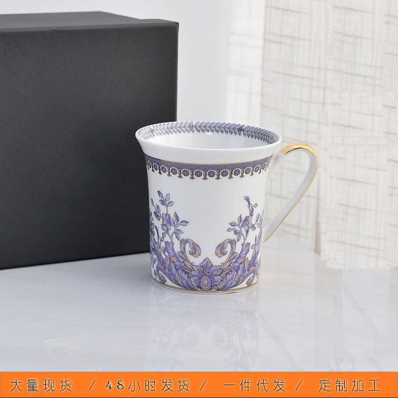 跨境个性潮流F家复古大斜口咖啡杯陶瓷男女描金家用办公室早餐杯