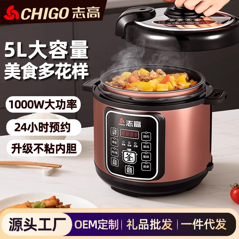 志高电压力锅5L家用多功能高压锅不粘内胆煮饭煲汤智能压力锅批发