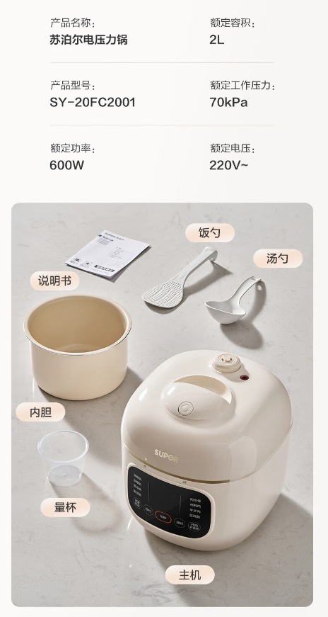 蘇泊爾電気圧力鍋2l開蓋収汁家庭用スマート予約タッチパネルSY-20FC2001高圧