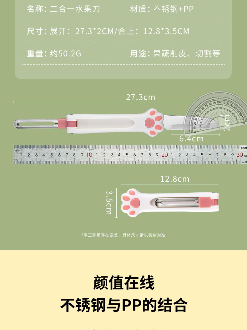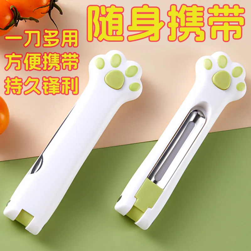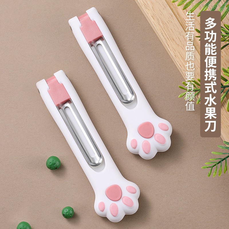 折りたたみ猫の爪フルーツナイフ家庭用ポータブルフルーツ食品サプリメントキッチン多機能ステンレス鋼果物ナイフツーインワン