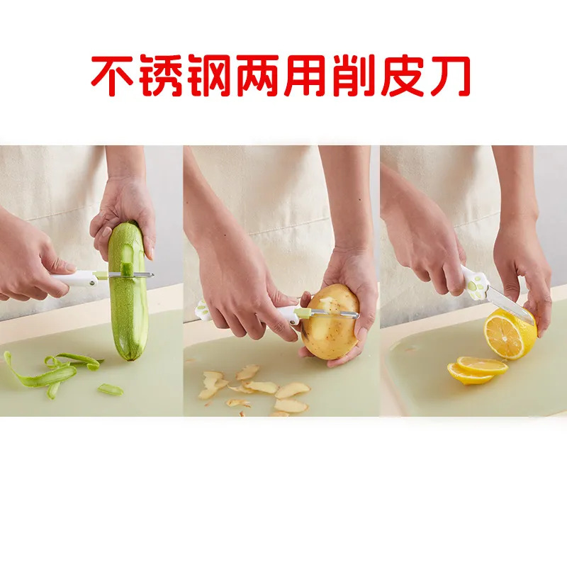 新商品多機能双頭果物ナイフ二合一果物と野菜の皮むきナイフ厨房果物の皮ナイフと果物の果物のかんなセットの卸売り