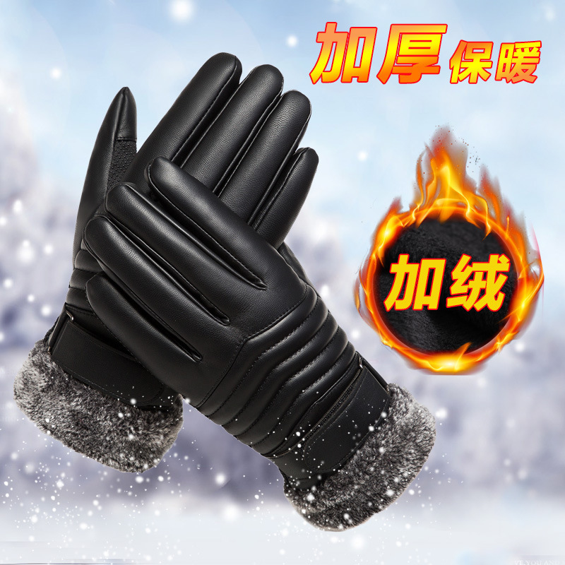 メーカー直供男性電車pu皮タッチパネル手袋ベルベット保温防寒手袋秋冬屋外自転車手袋