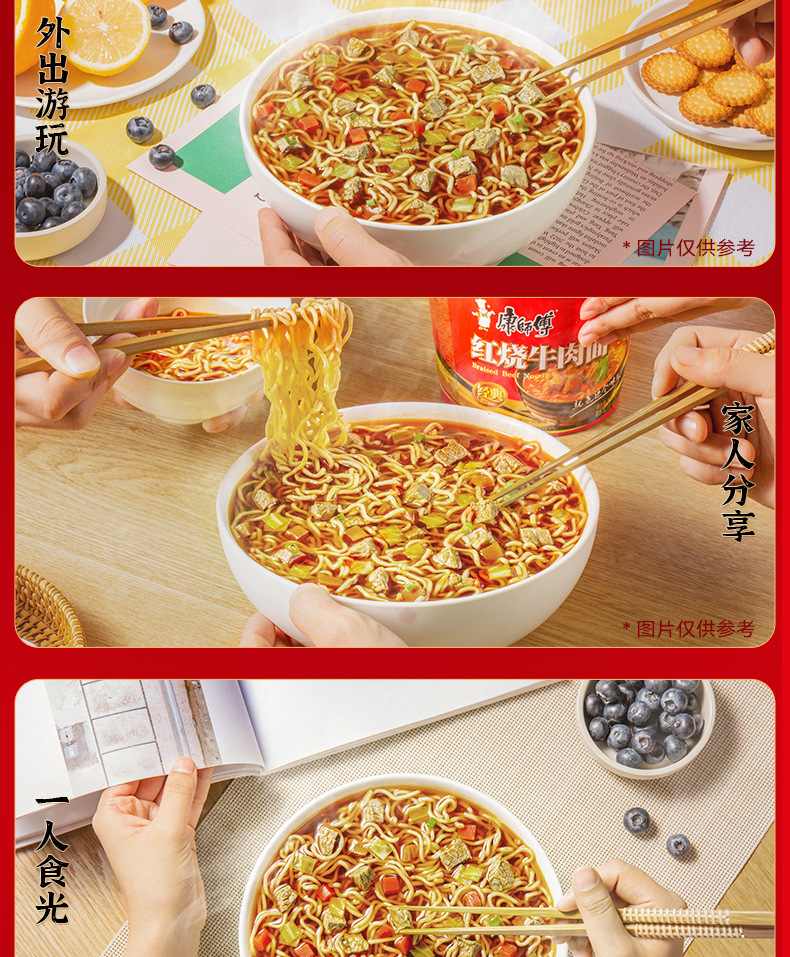 康師傅桶装即席麺、牛肉煮込み味、12個入り、夜更かしやドラマ鑑賞に最適な即席麺