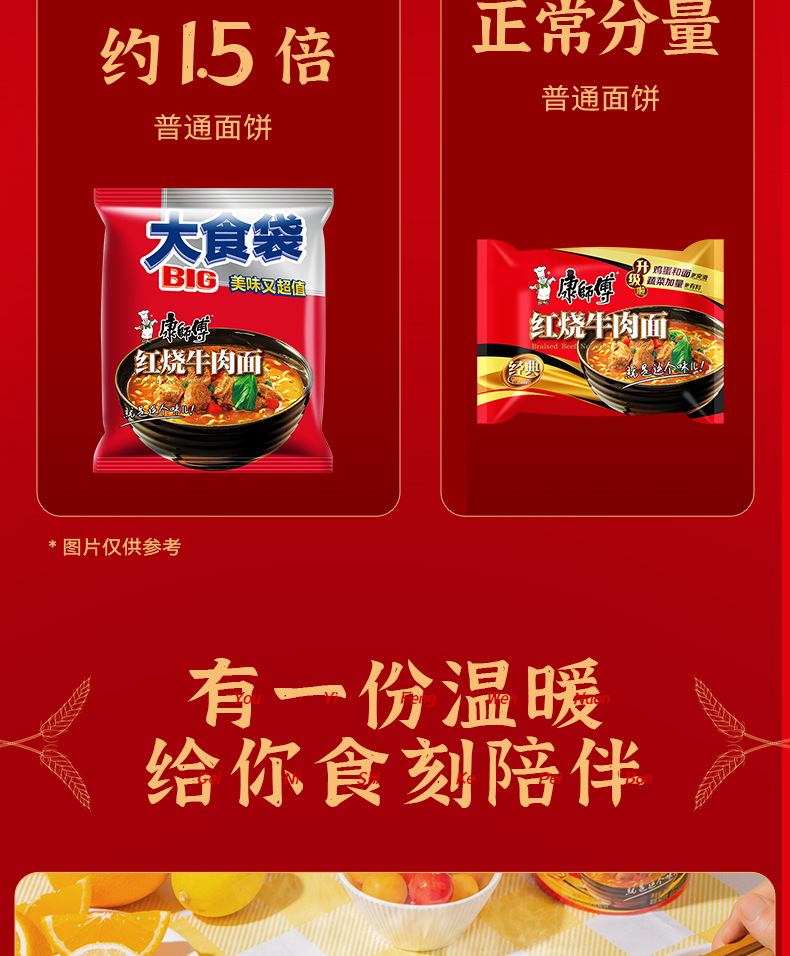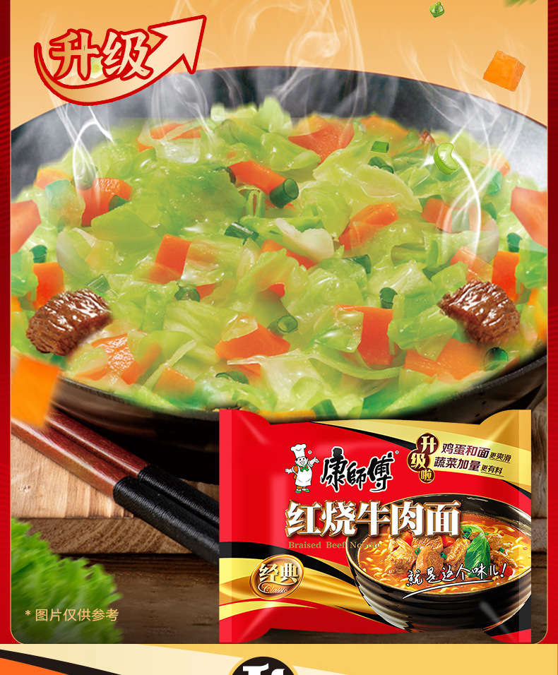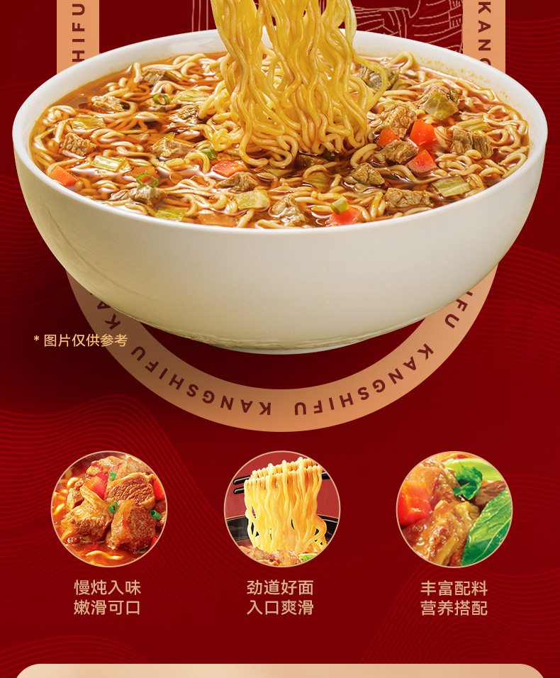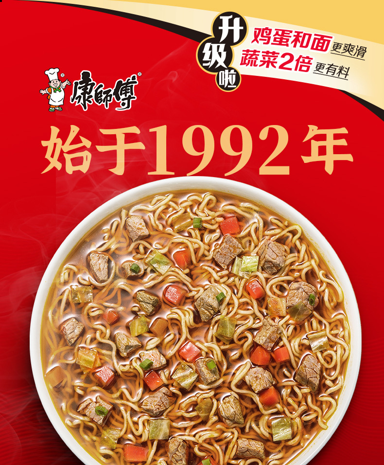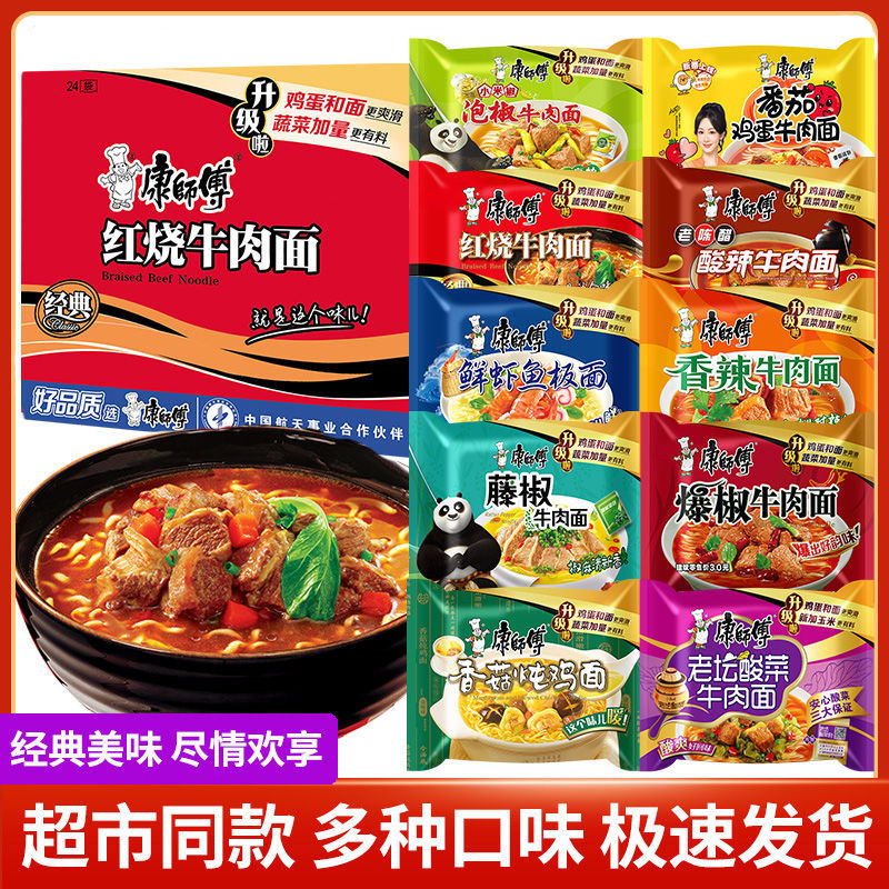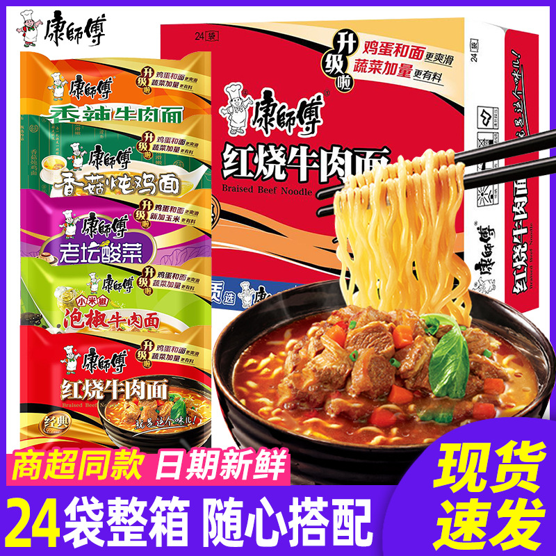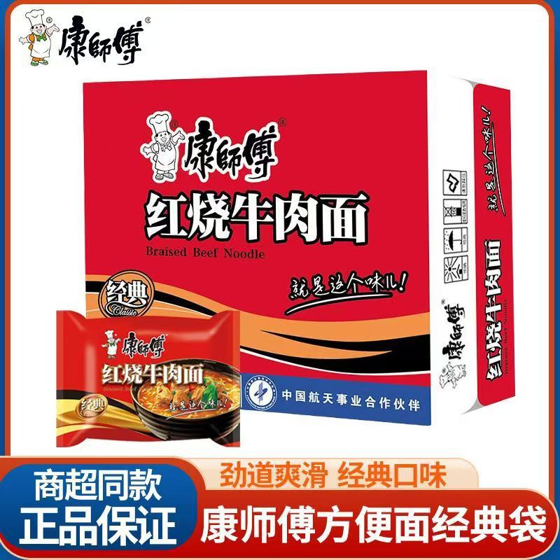 康师傅方便面红烧牛肉面整箱24包袋装泡面送碗面食速食食品免煮