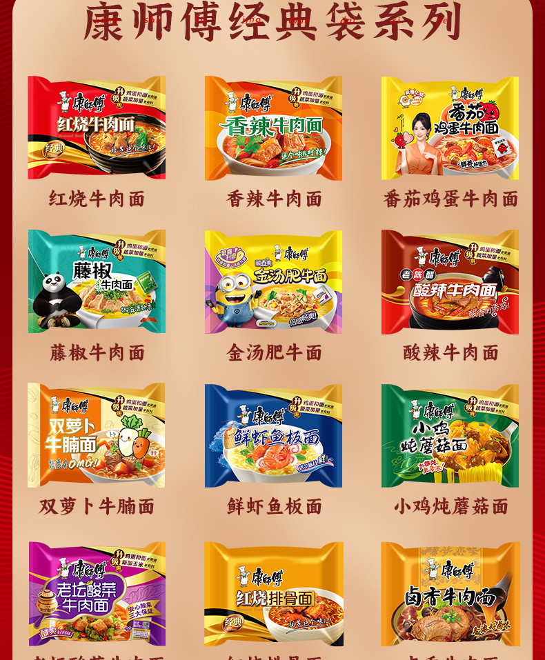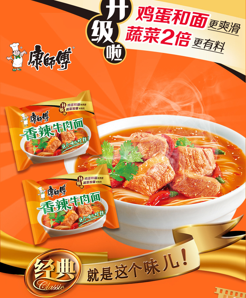 康师傅经典袋方便面红烧牛肉面整箱24速食袋装泡面香辣夜宵好吃