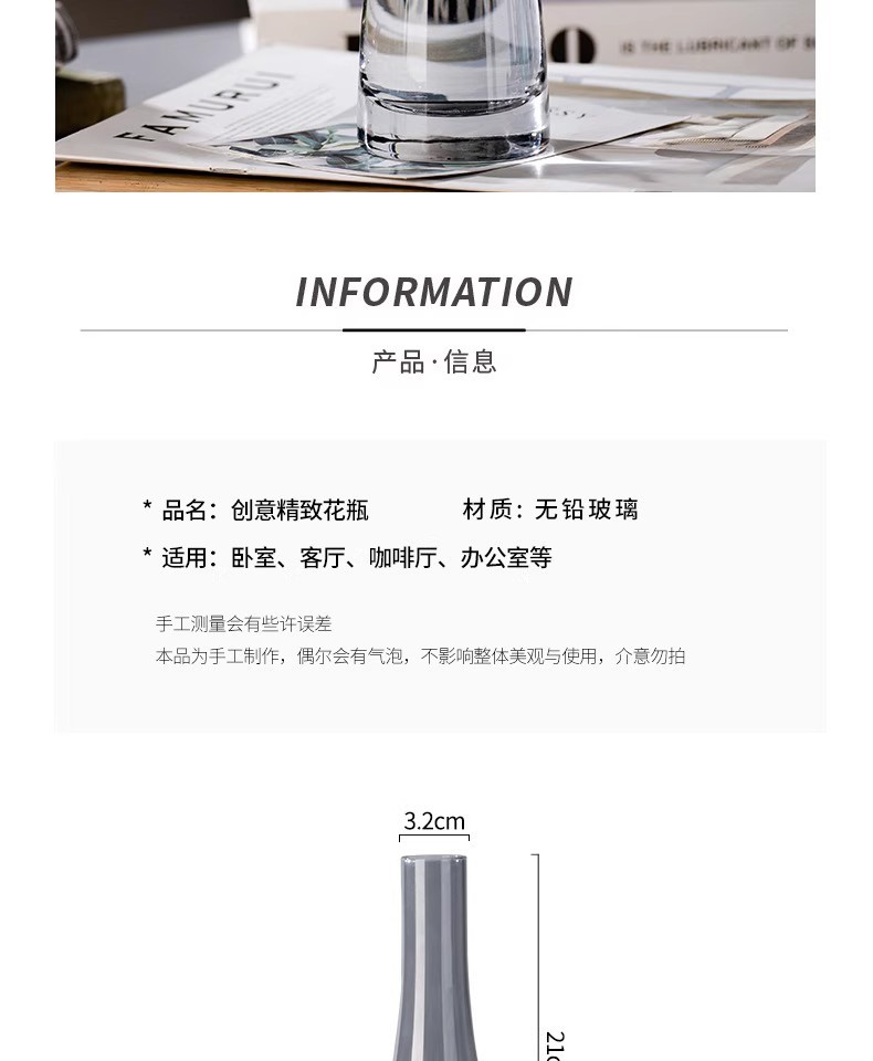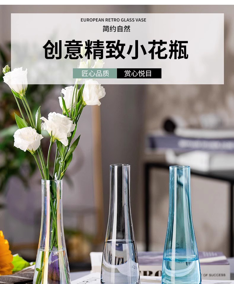 水培迷你鲜花酒店摆件单支ins风花瓶玻璃透明插花花器北欧小