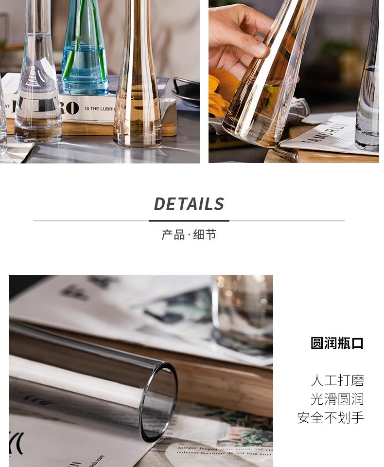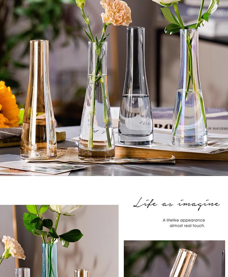 北欧スタイルins風小花瓶客間生け花置物ガラス透明水養花ミニシンプル花器