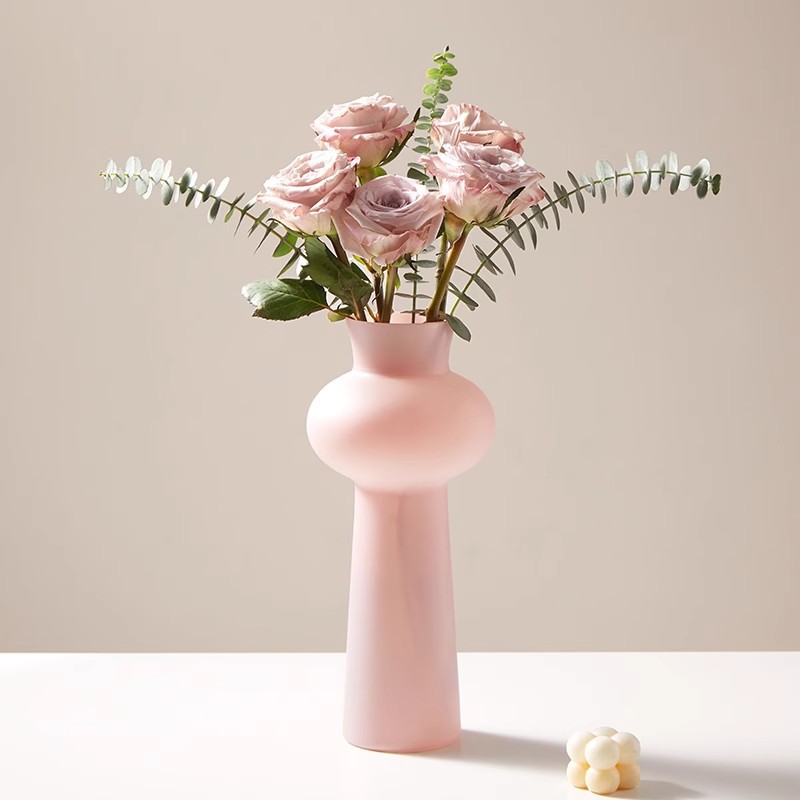 モダンシンプルガラス花瓶高级感置物ピンクリビング生け花ガラス水培生花ボトル高颜値