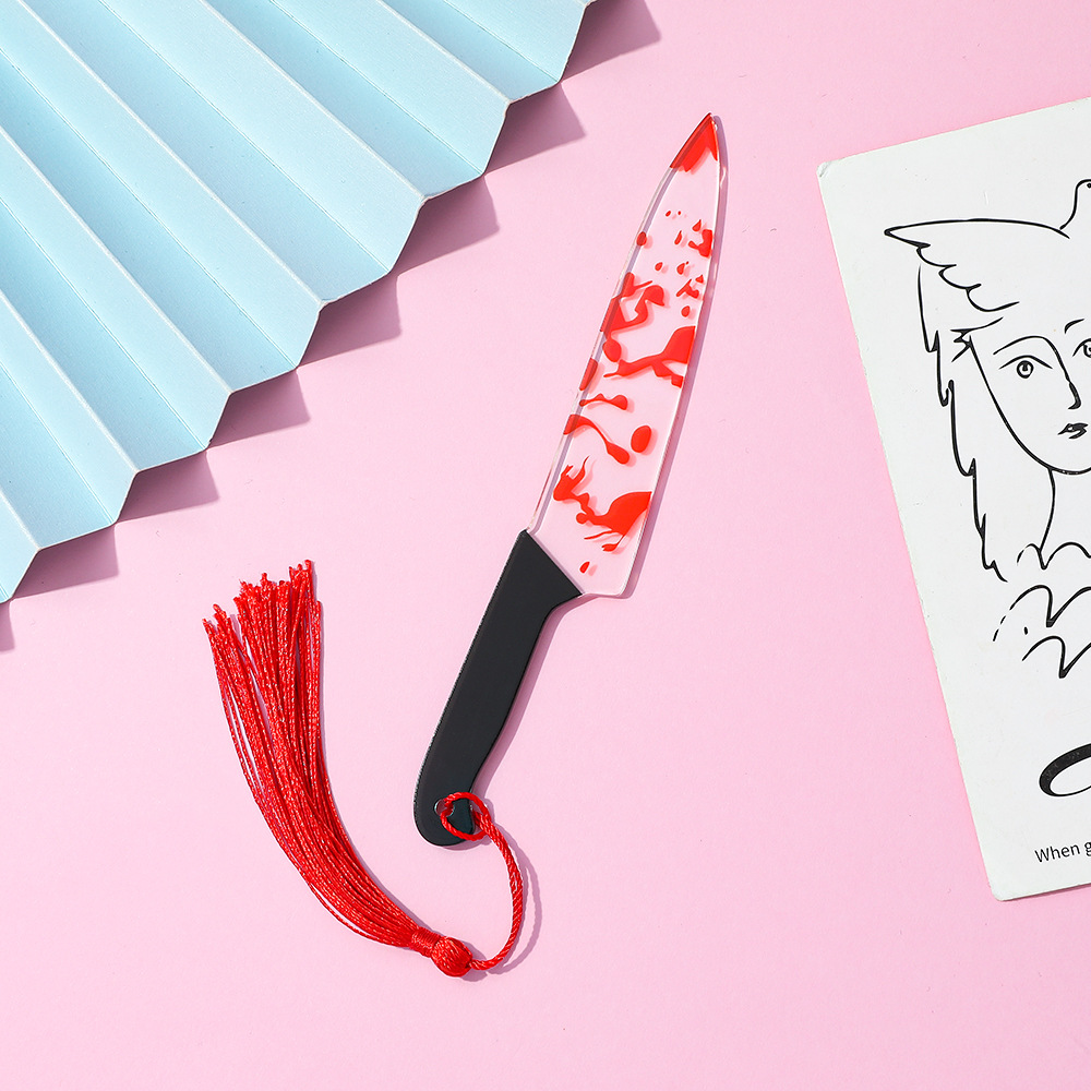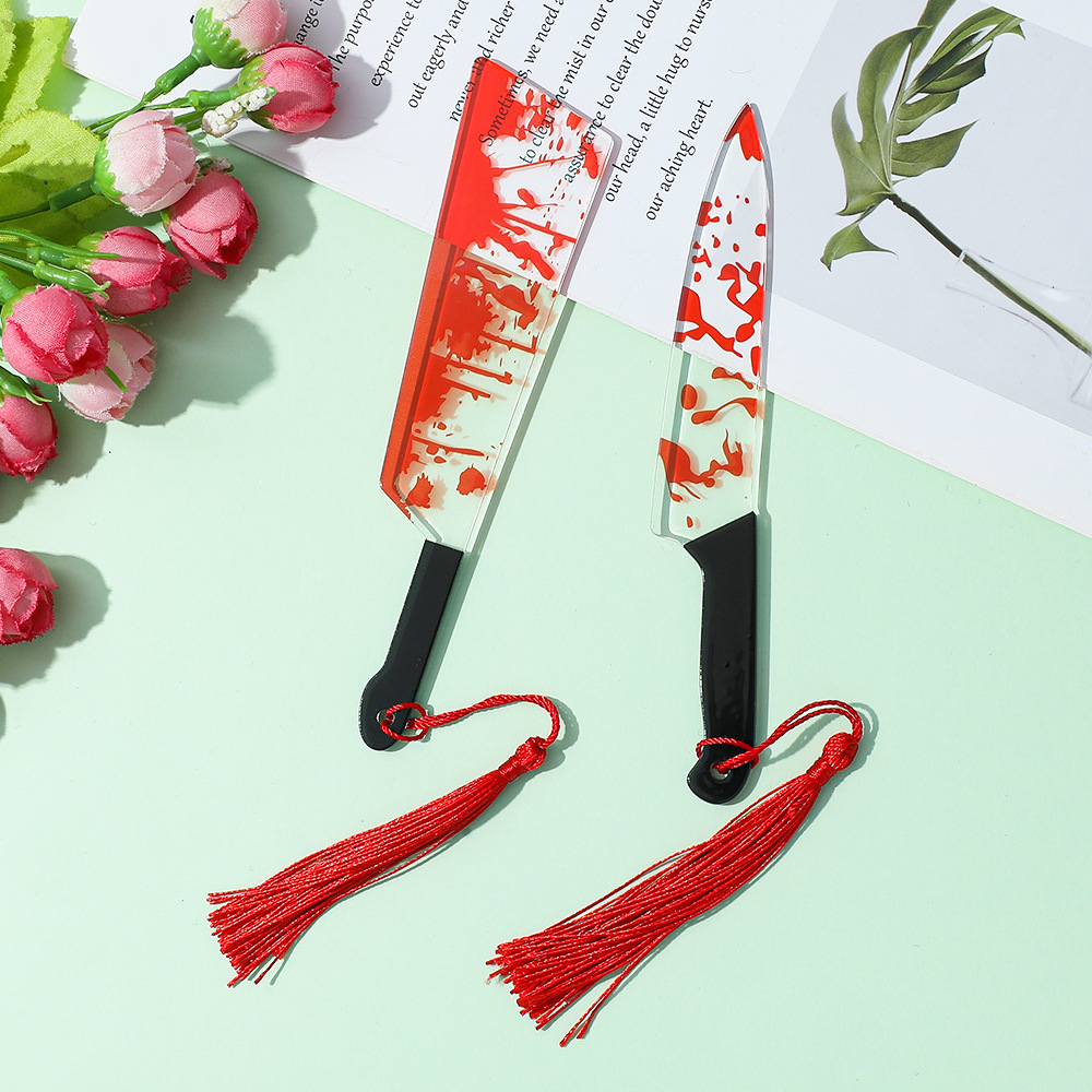 クリエイティブアクリル血色刃物ホラーブックマーク、本虫と読書愛好家へのハロウィーンプレゼント