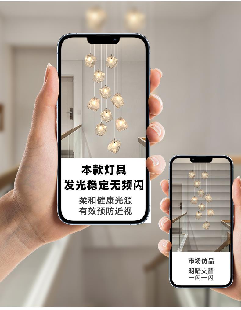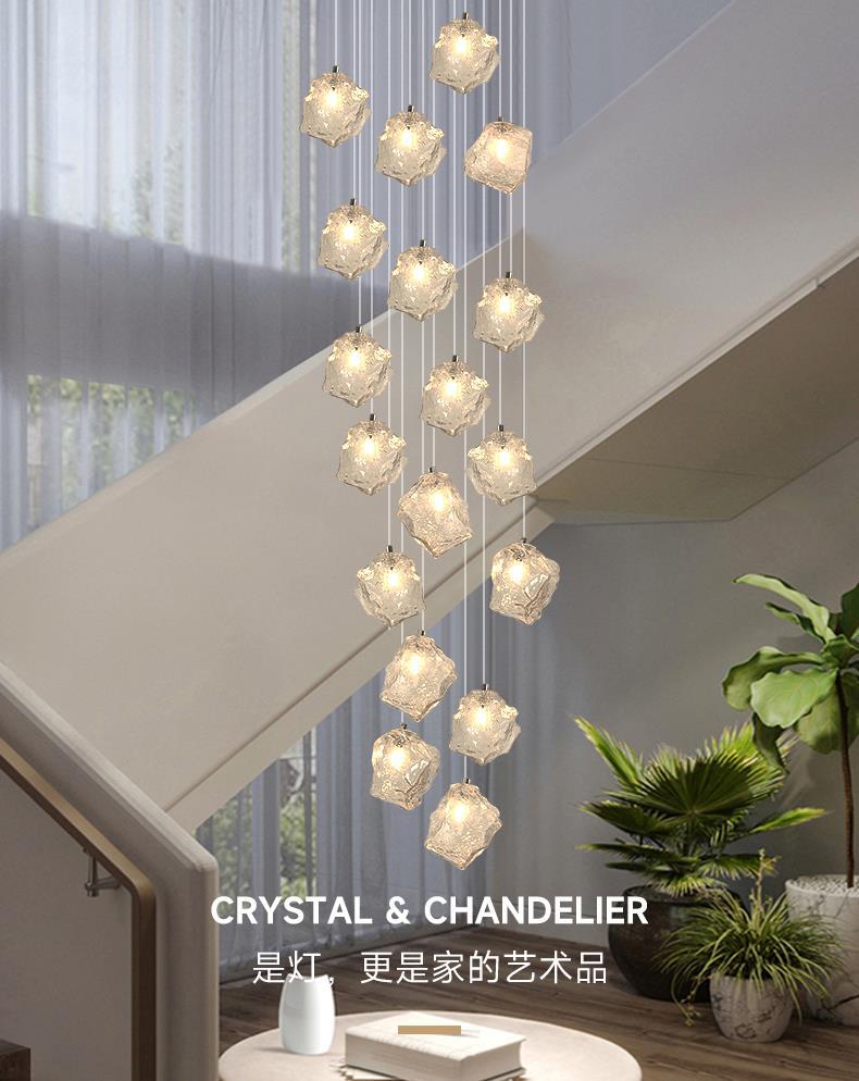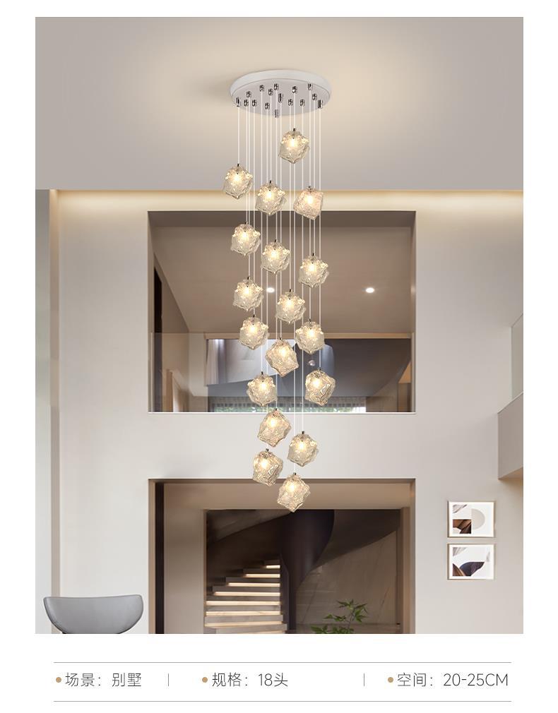 階段の長いシャンデリアの別荘を選んでシンプルにします。