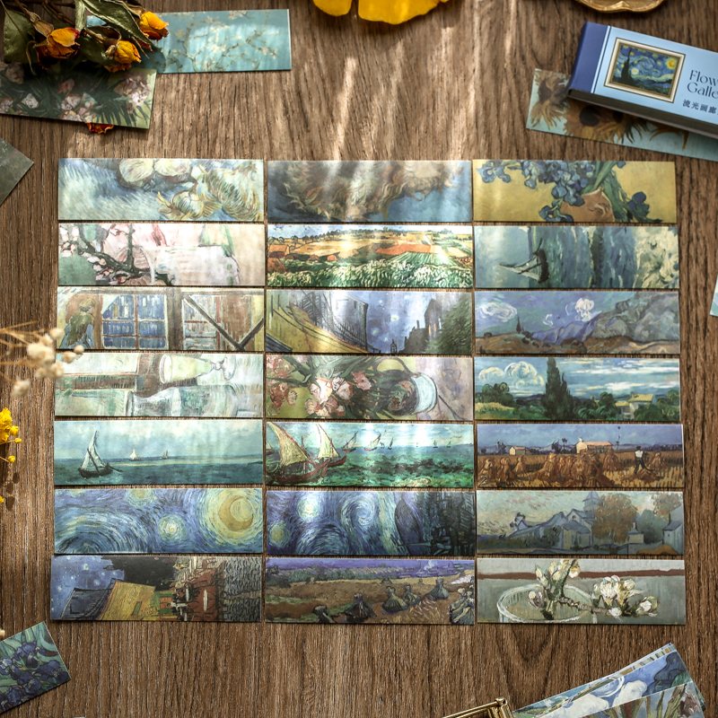 ストリーマーギャラリーハンドブックと紙ステッカーブックレトロイン油絵スタイルゴッホ星空ハンドブックコラージュ装飾ステッカー