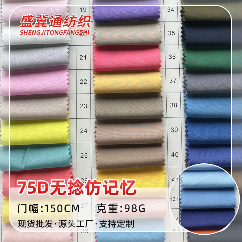 75D無撚糸イミテーションメモリー300色生地、ポリエステルジャケット、ダウンジャケット、カジュアルパンツ、作業服生地の在庫供給