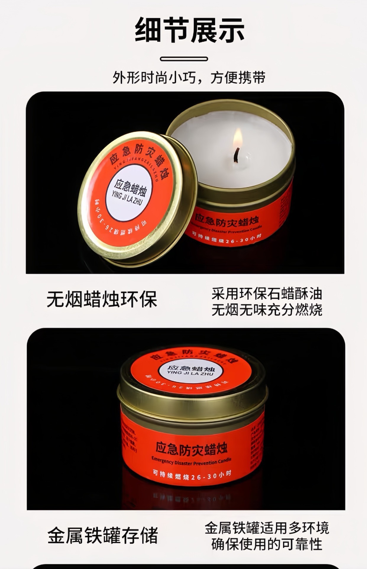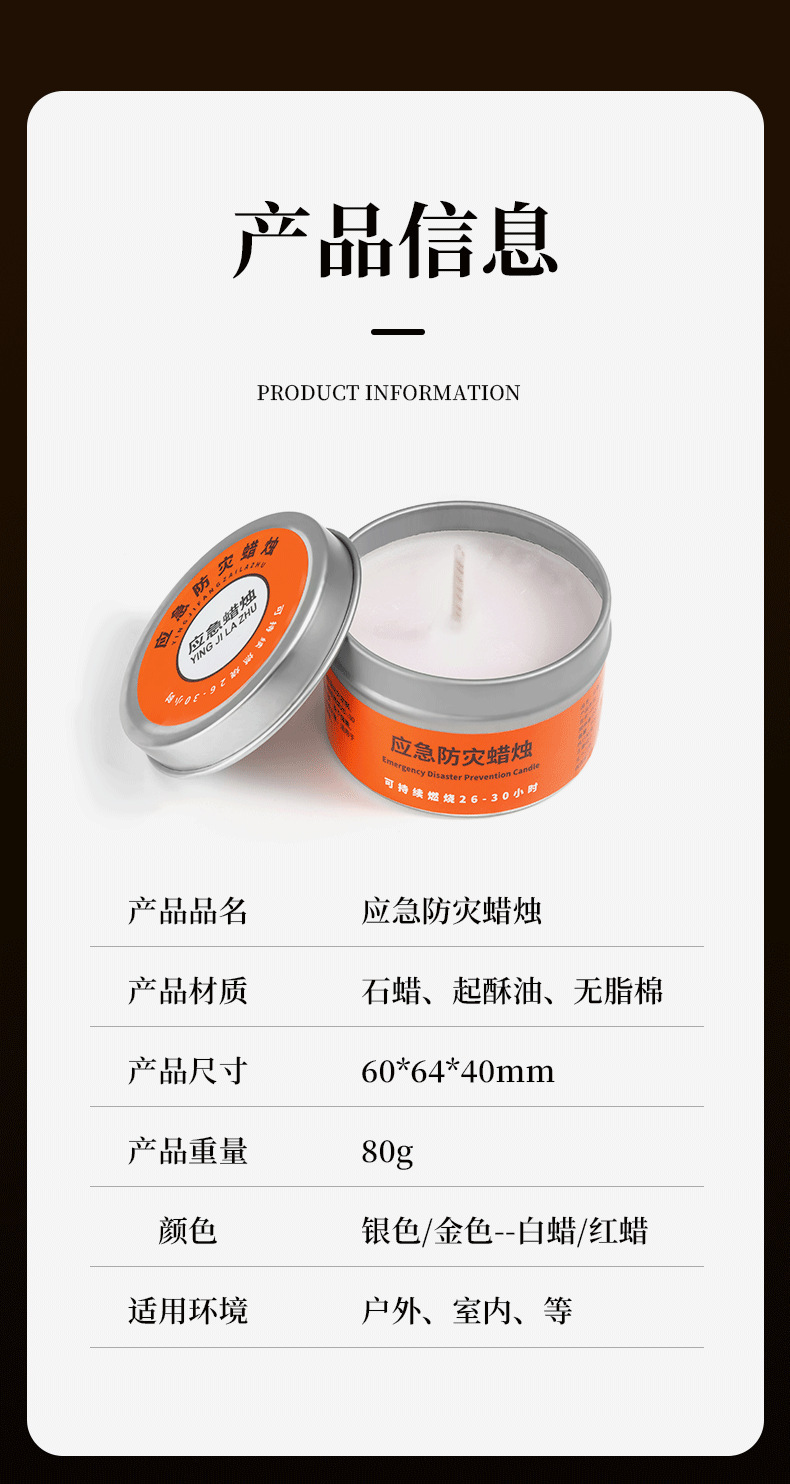 应急防灾家用照明停电蜡烛户外防风防水无烟蜡烛铁罐装蜡烛批发