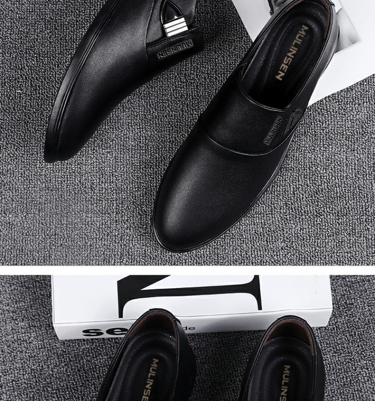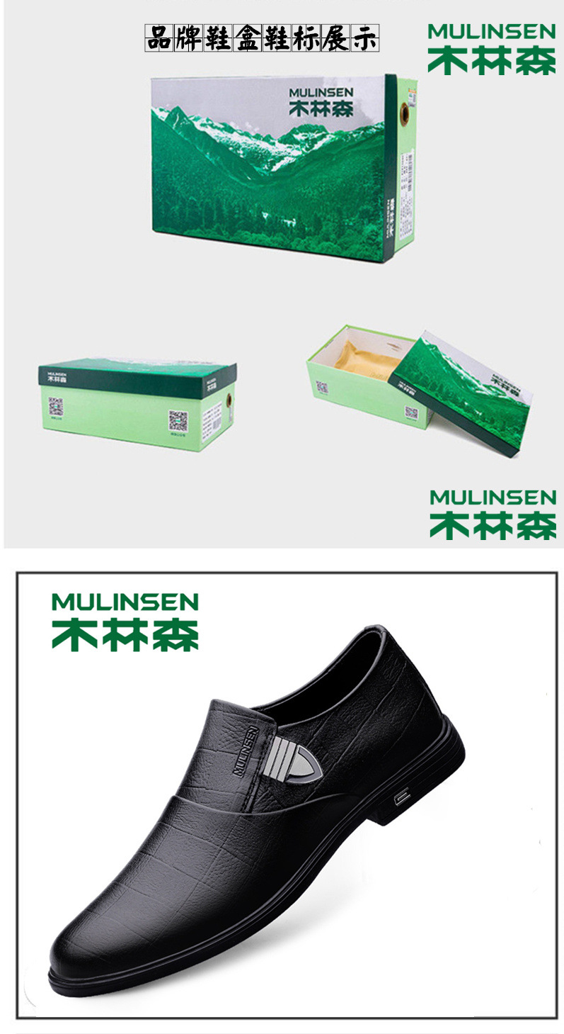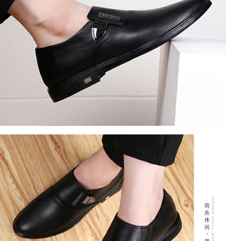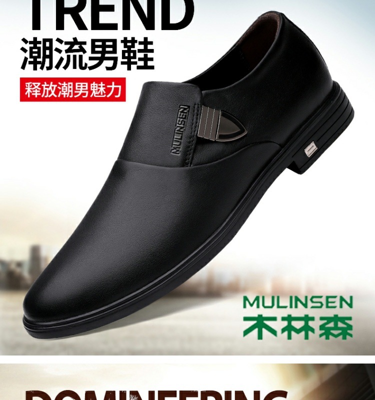 木林森男靴春の新型真皮通気性父の柔らかい底の柔らかい皮の正装ビジネスカジュアル靴男黒