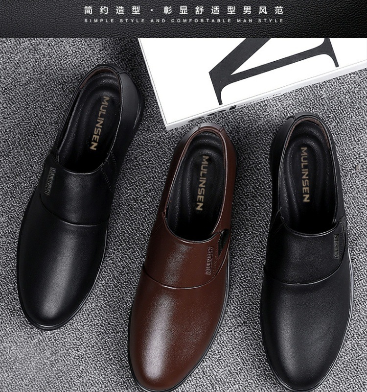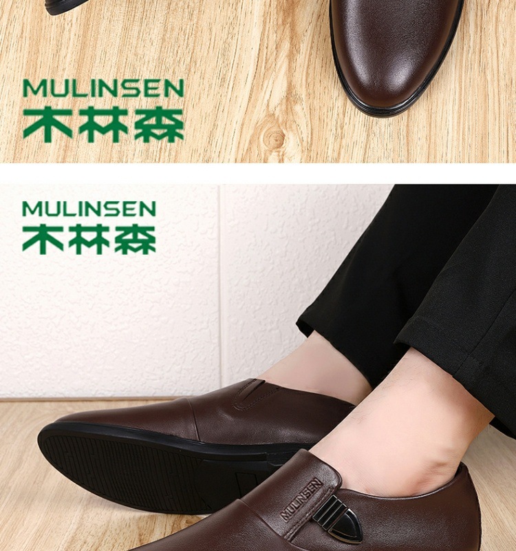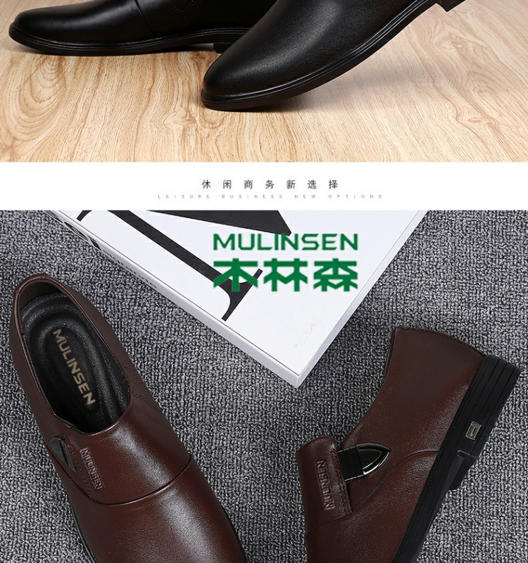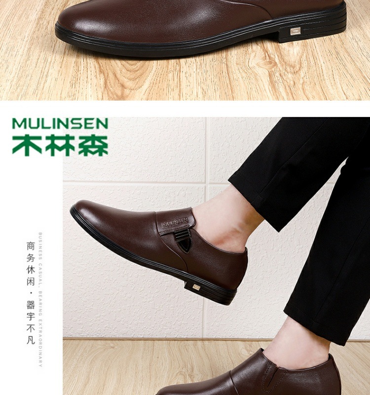 木林森革靴男性のトップ層牛革ビジネススーツのお父さんの中年の足の幅の英倫温州の厚い靴
