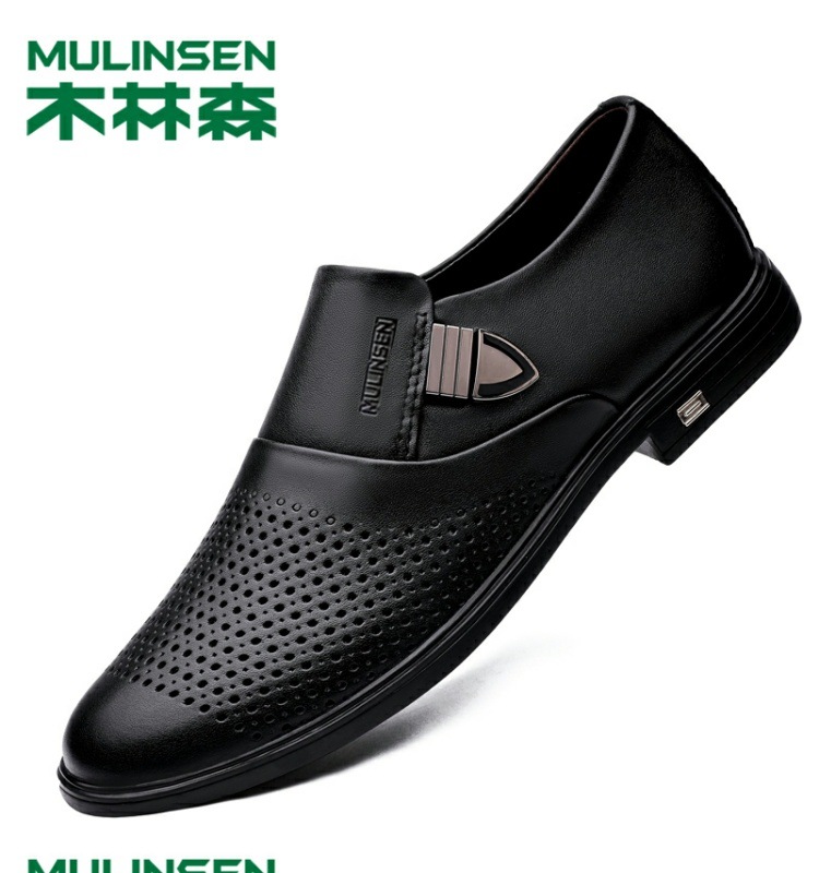 木林森男靴夏ビジネスカジュアル男性本革ソフト皮ソフト底正装小革靴通気穴靴