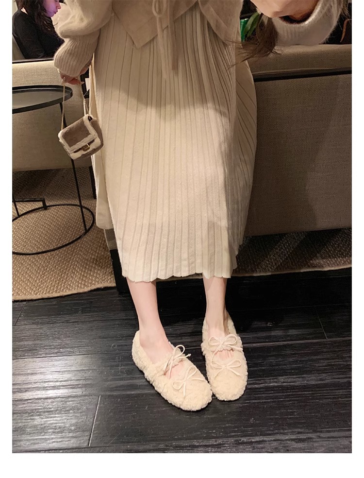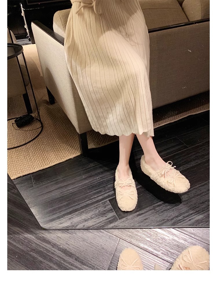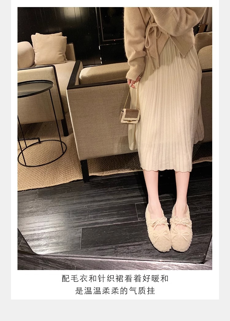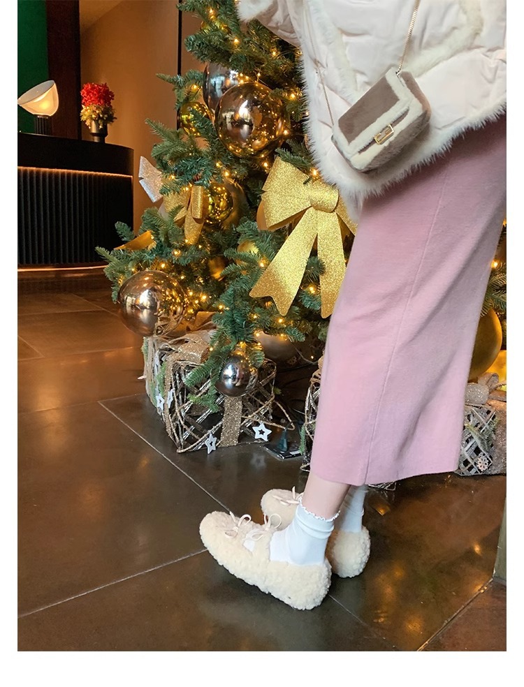 Oceanone内に子羊の毛靴が高くなりました。冬の新型の蝶結びは柔らかいです。