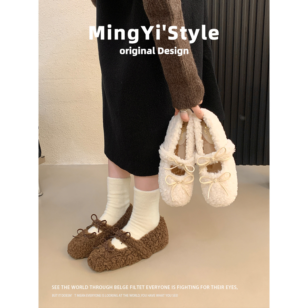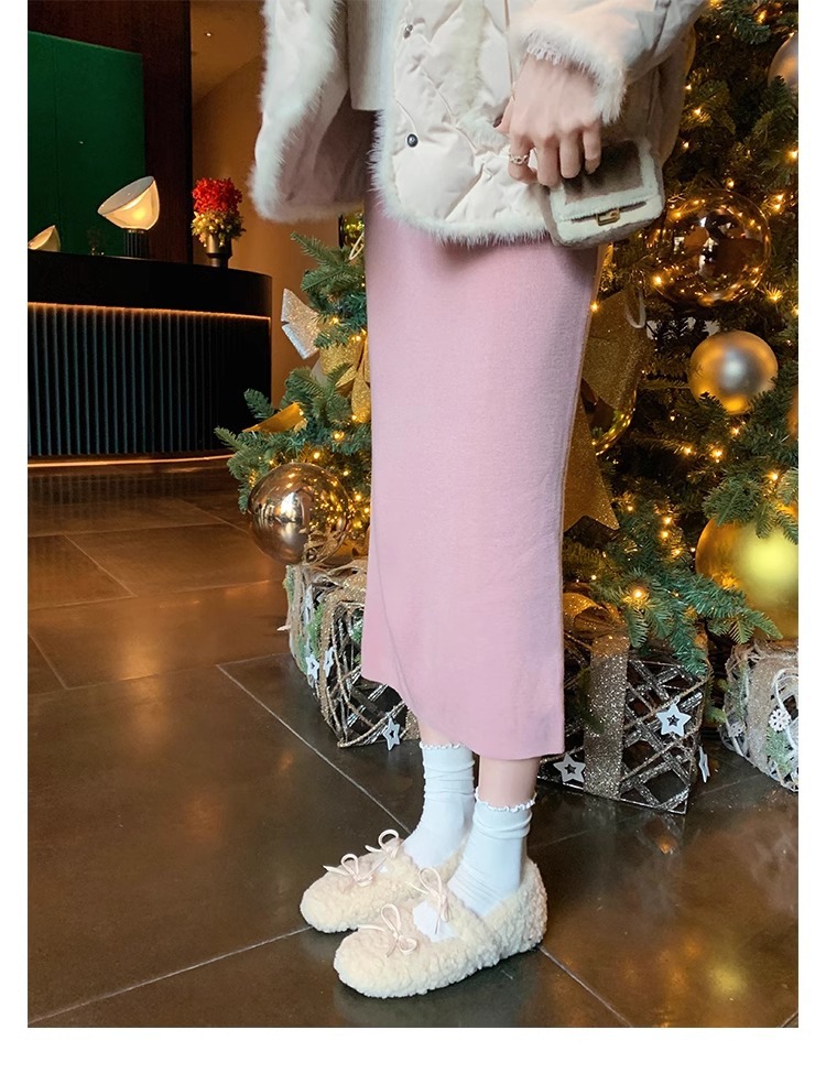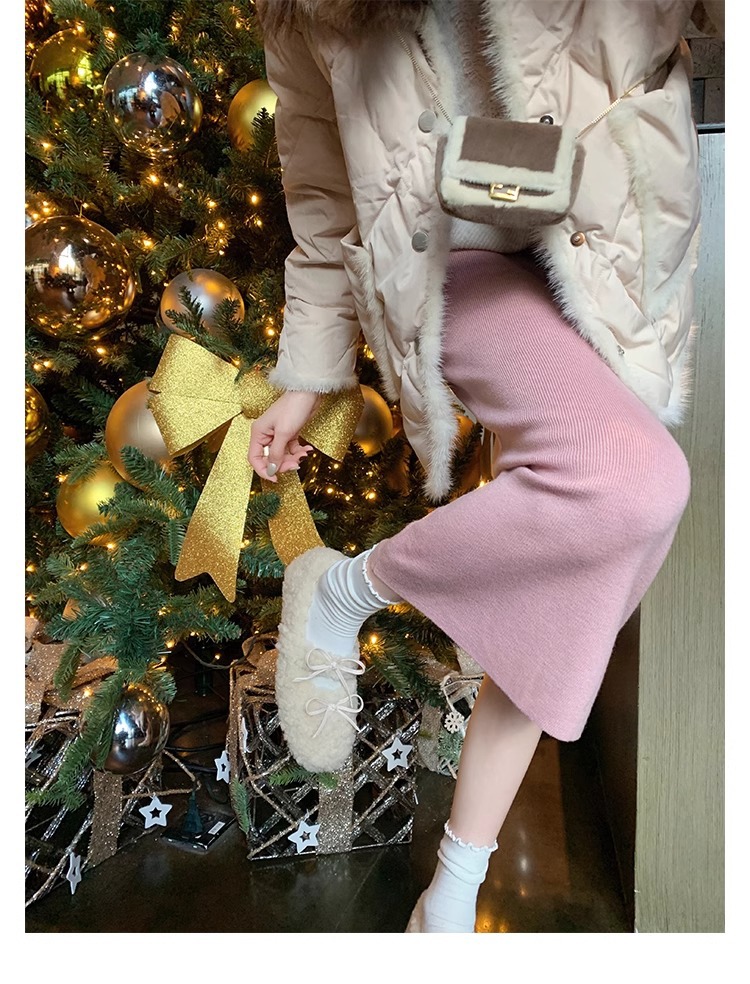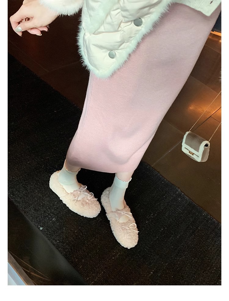 Oceanone内に子羊の毛靴が高くなりました。冬の新型の蝶結びは柔らかいです。
