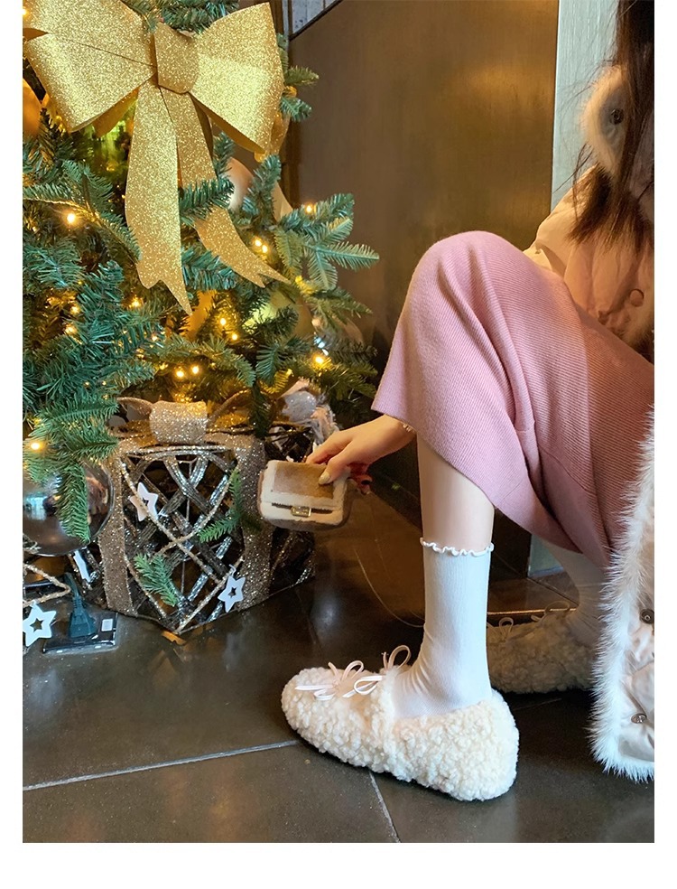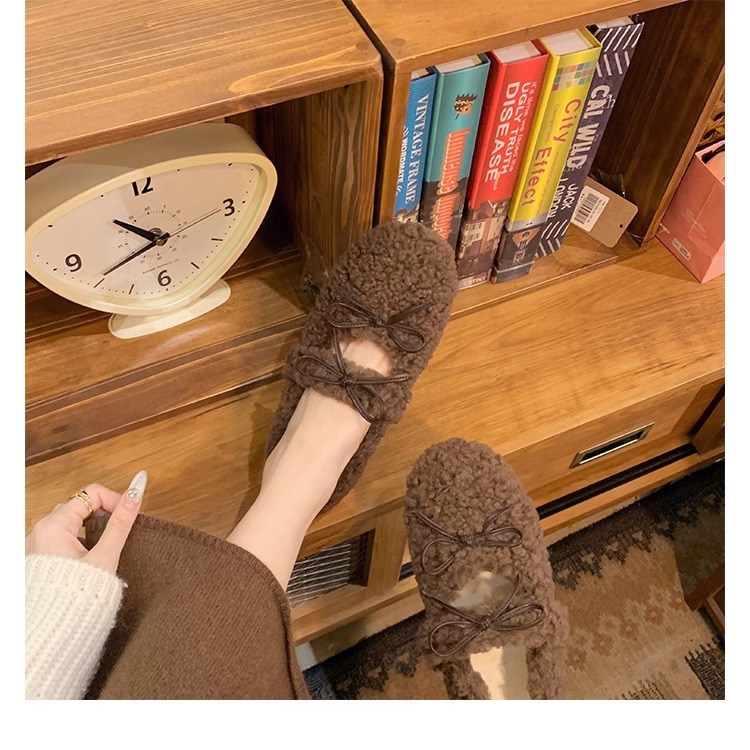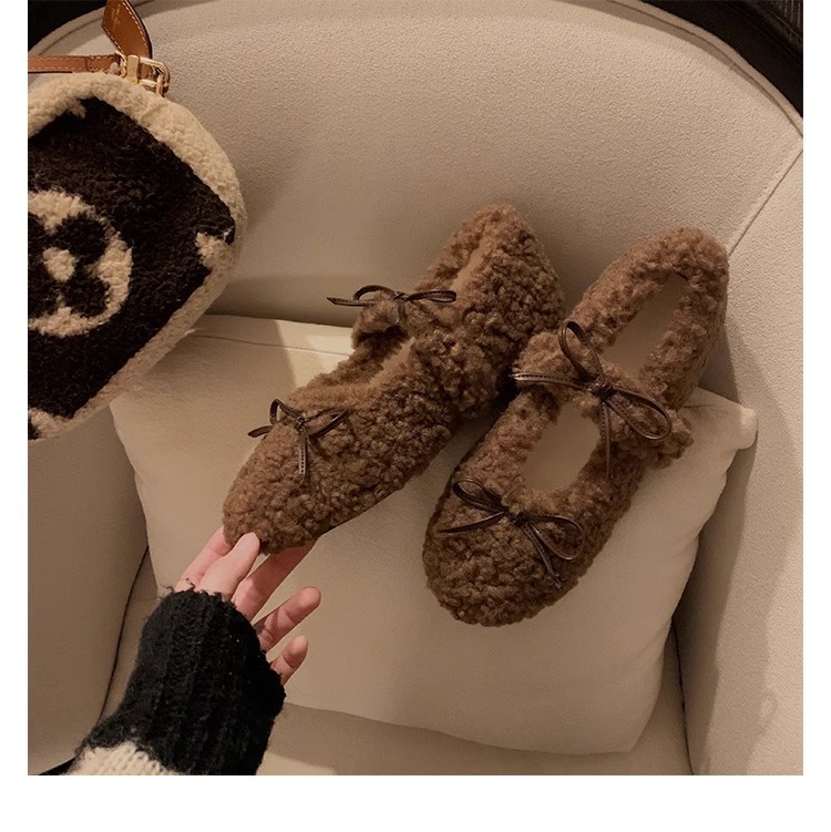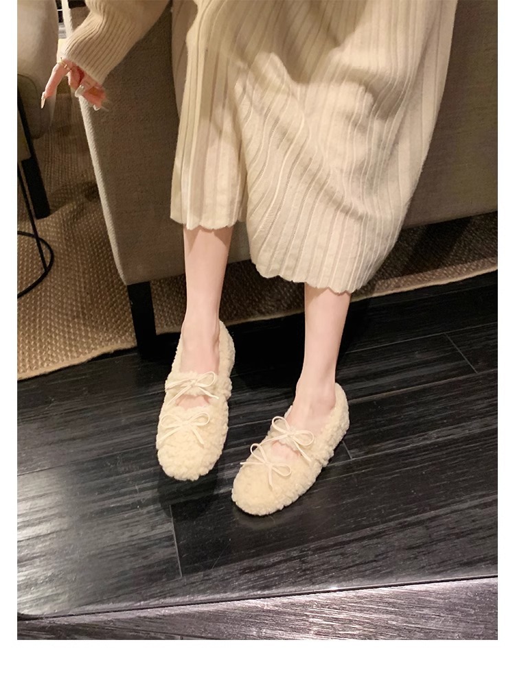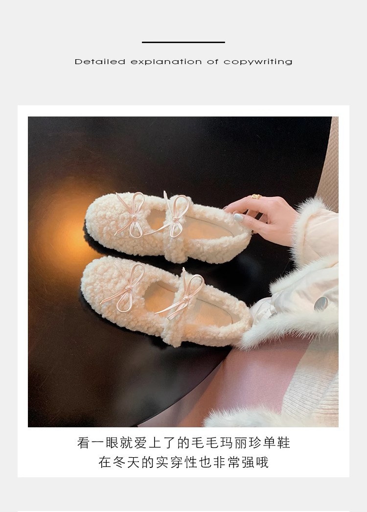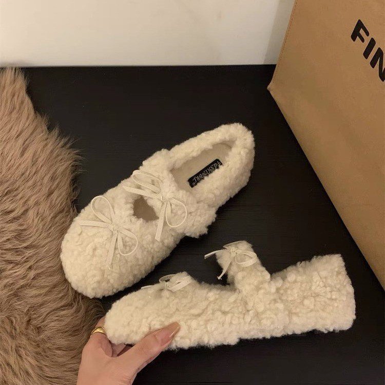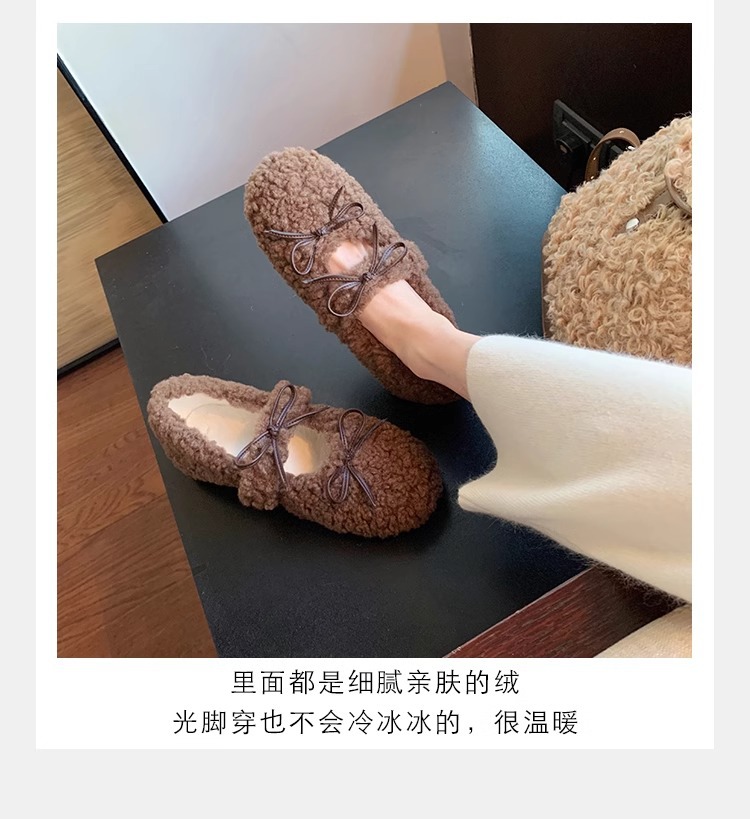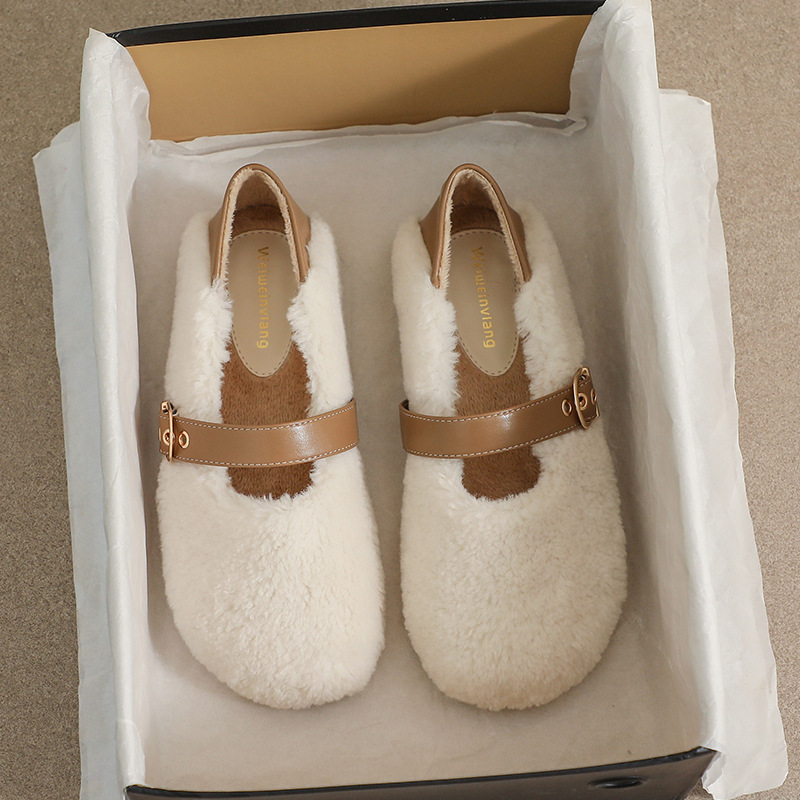 女鞋毛鞋女冬外穿新款温柔仙女风保暖棉鞋芭蕾休闲平底玛丽珍鞋