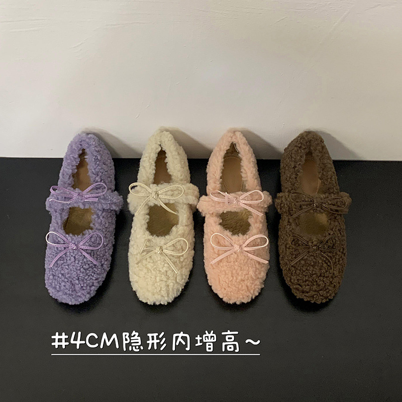内增高羊羔毛毛鞋女外穿2025秋冬新款仙女风温柔加绒玛丽珍鞋单鞋