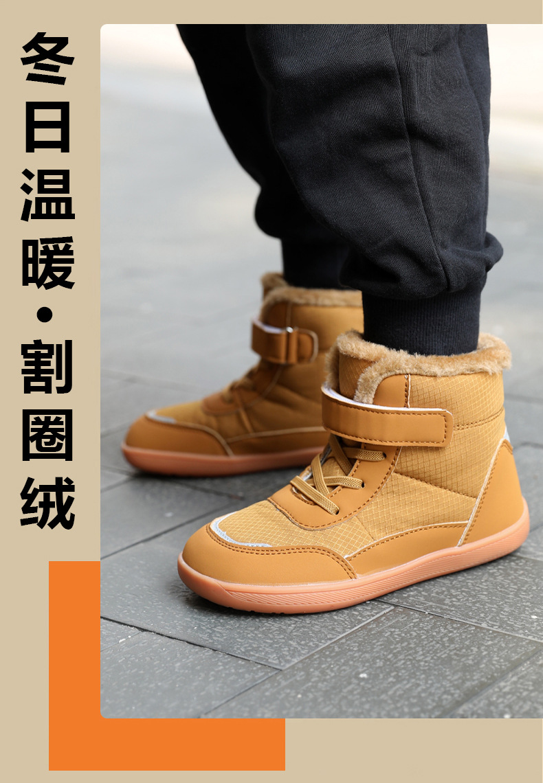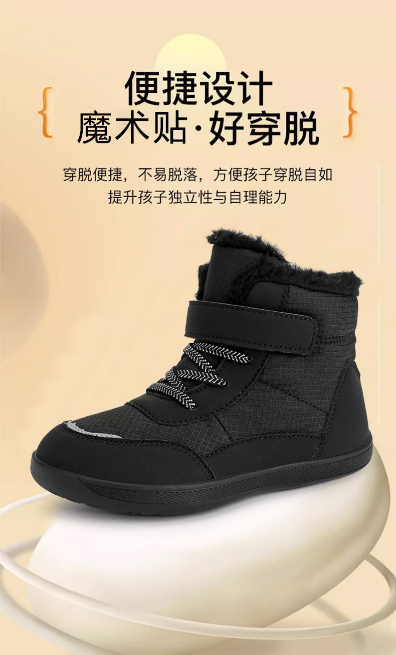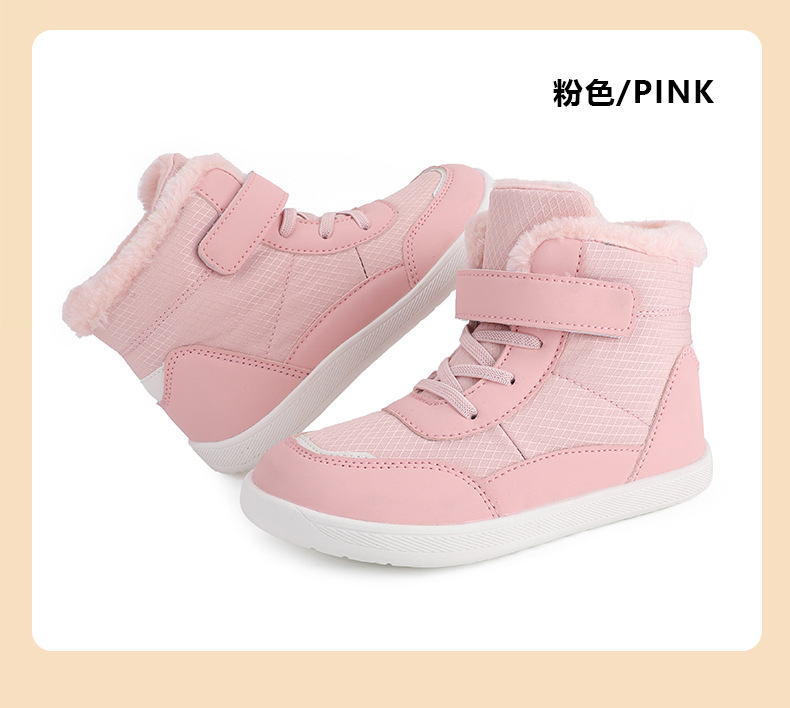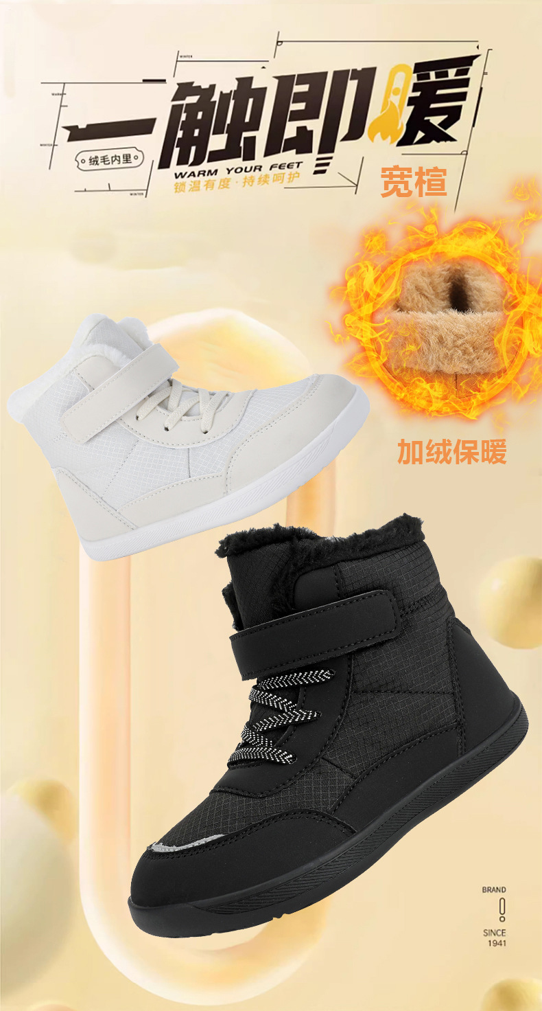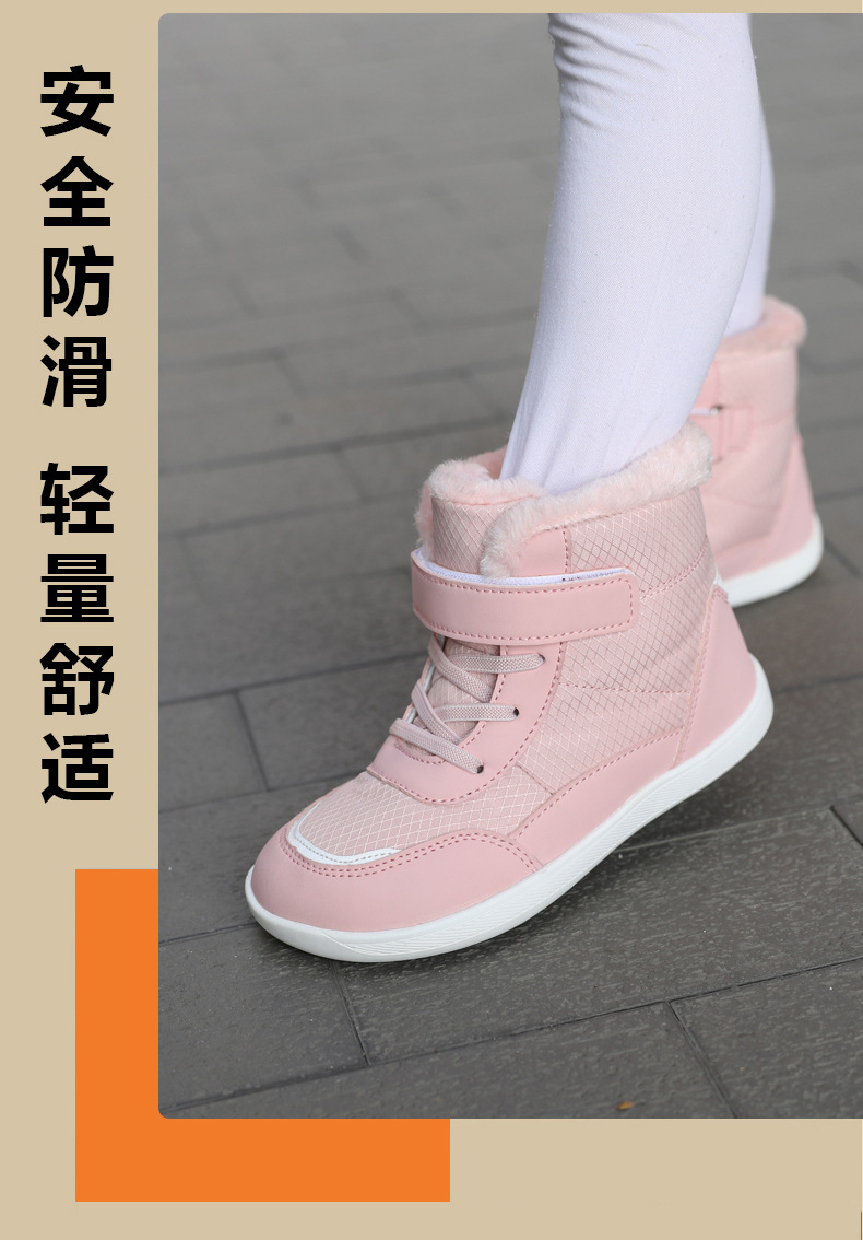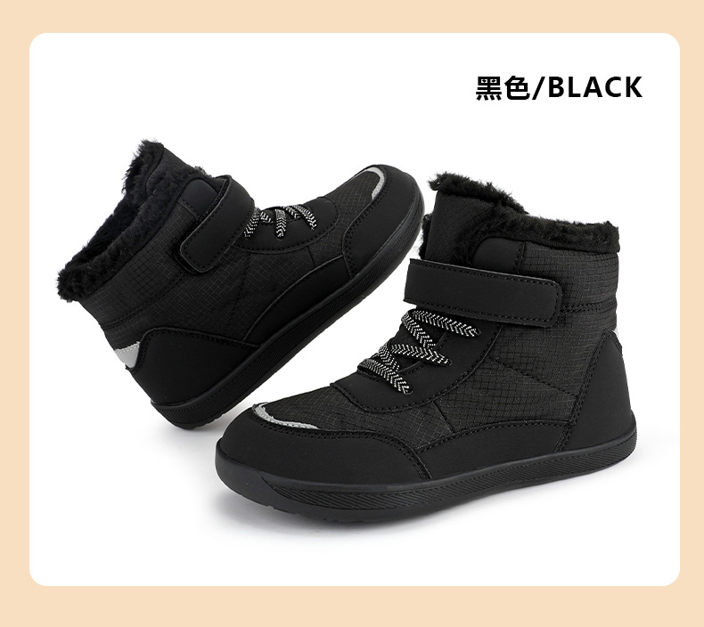 冬季儿童棉鞋男童女童雪地靴经典平地宽头舒适中帮宽掌保暖靴