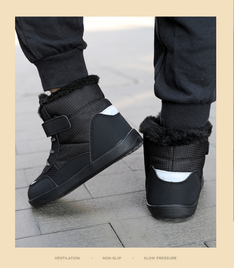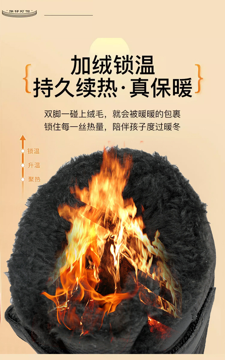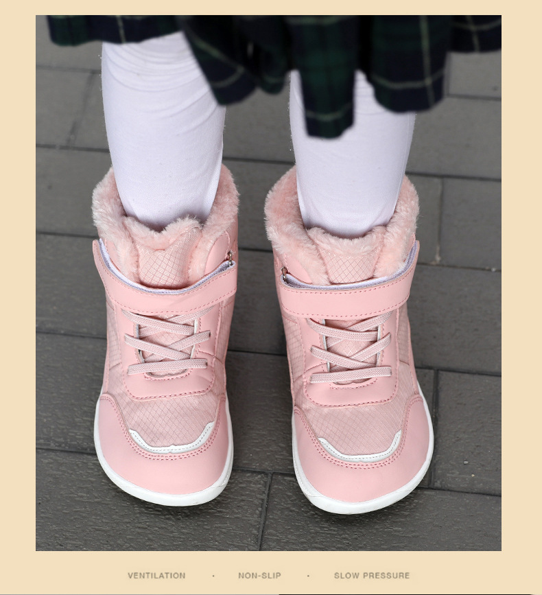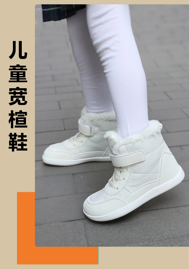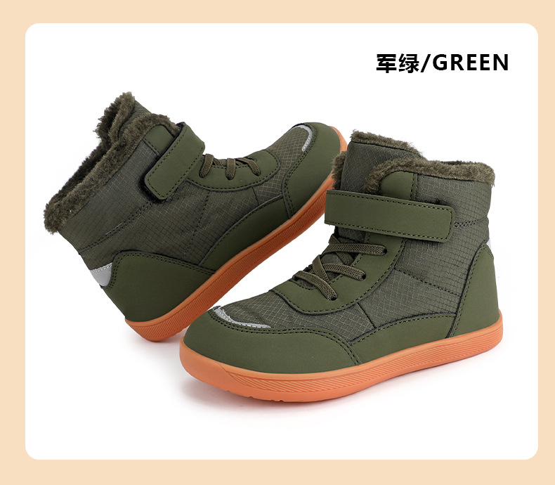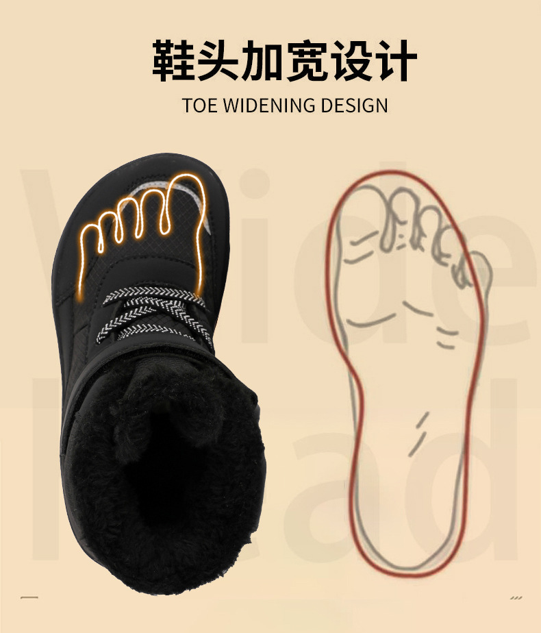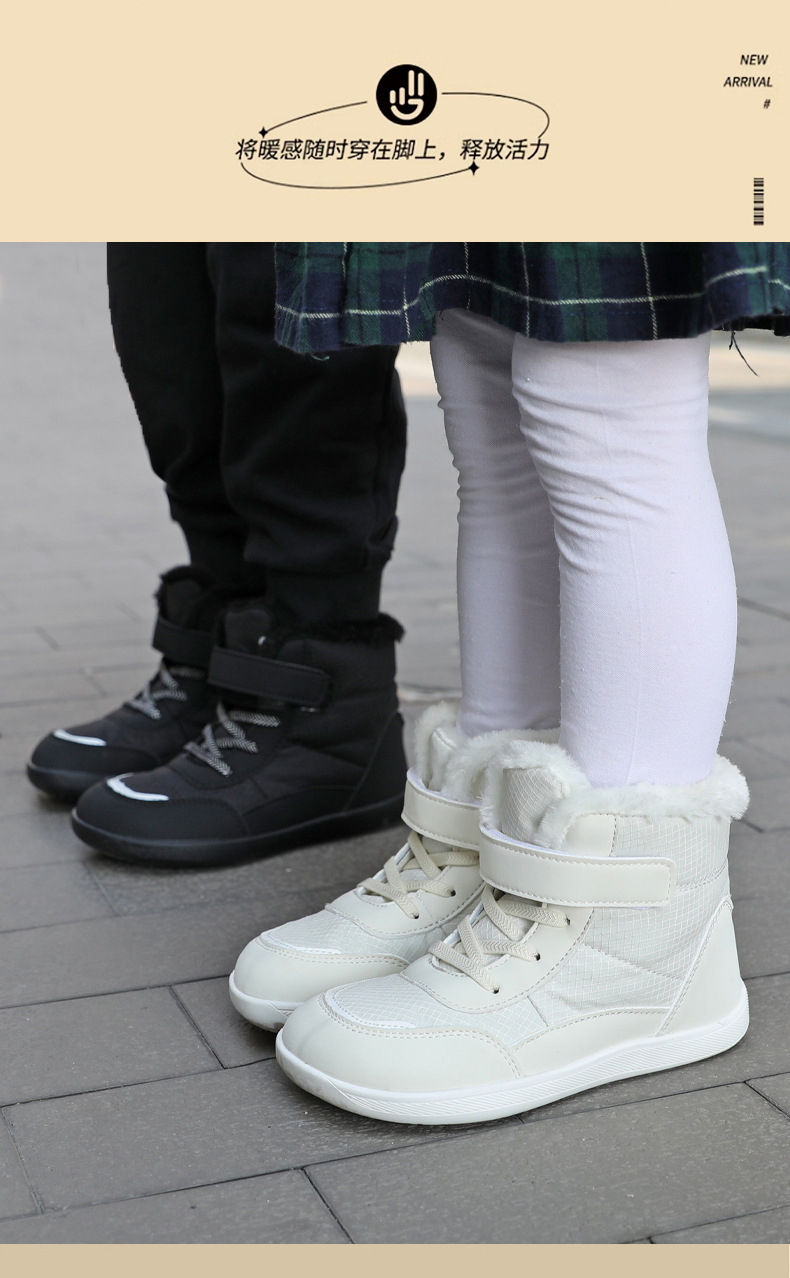 冬季儿童棉鞋男童女童雪地靴经典平地宽头舒适中帮宽掌保暖靴