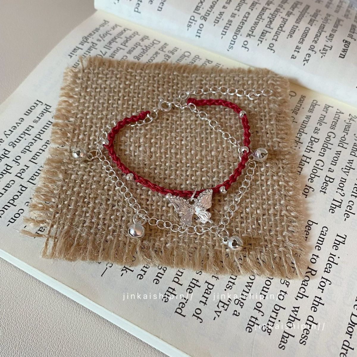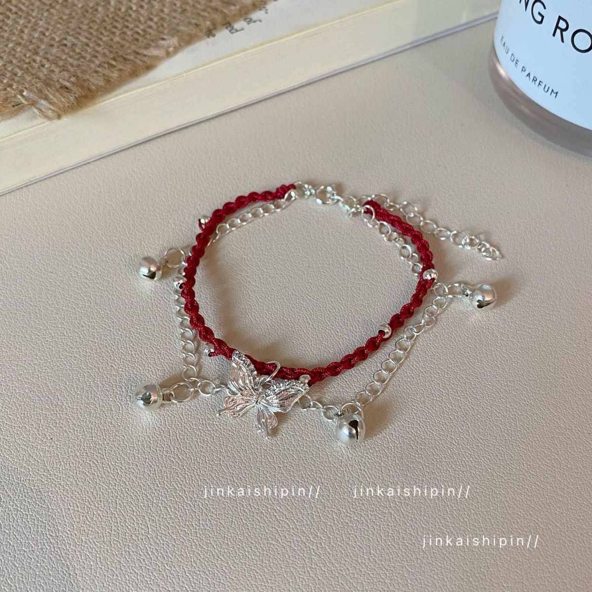 苗疆の中国式の少女の赤い縄の蝶の鈴のブレスレットの本命年の高級な精巧な手縄の手編みの装飾