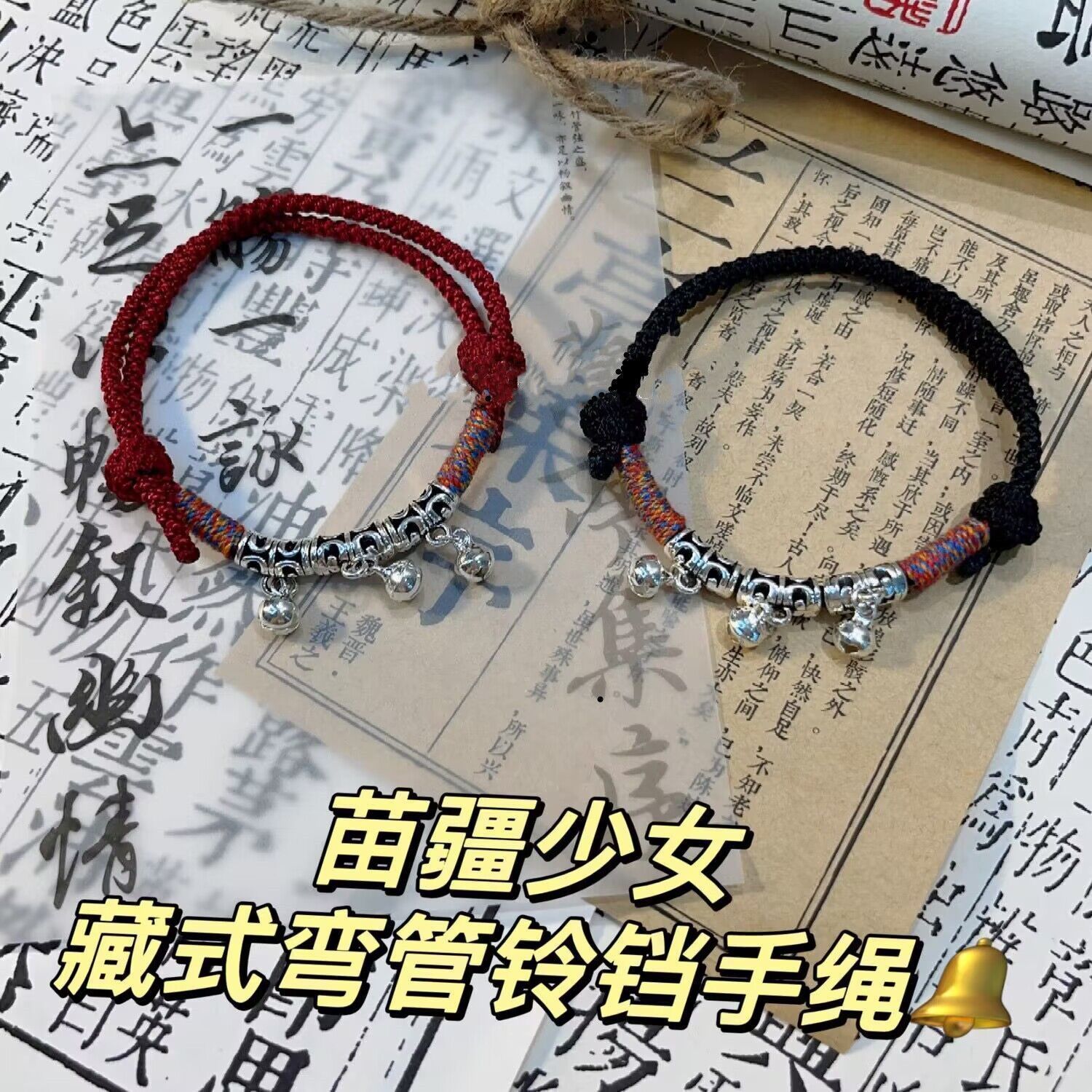ミャオ族の少女 ~ 中国式の福のブランドの手織りの双紅の縄の鈴のブレスレットの小さい大衆の設計感の本命の年の贈り物