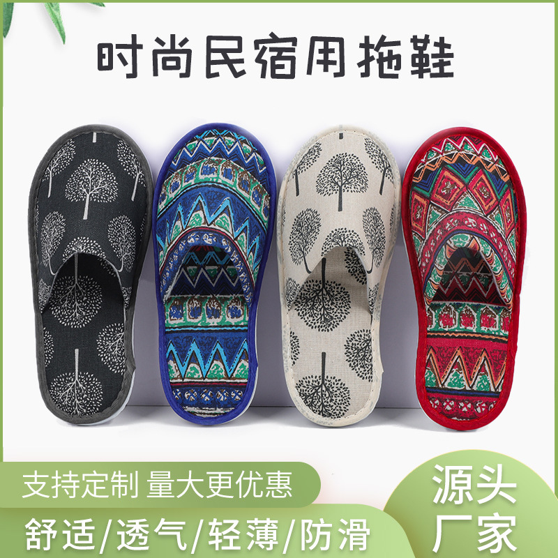 メーカー現物卸売り使い捨てファッションプリント麻布スリッパホテル民宿旅館客室柳葉紋底