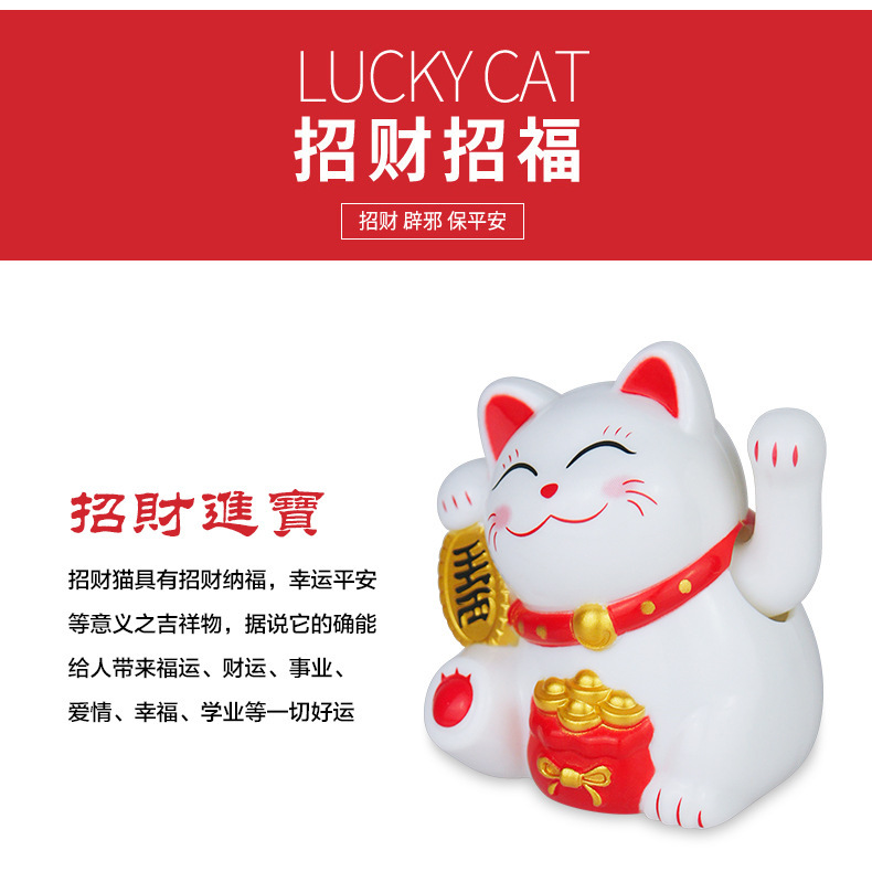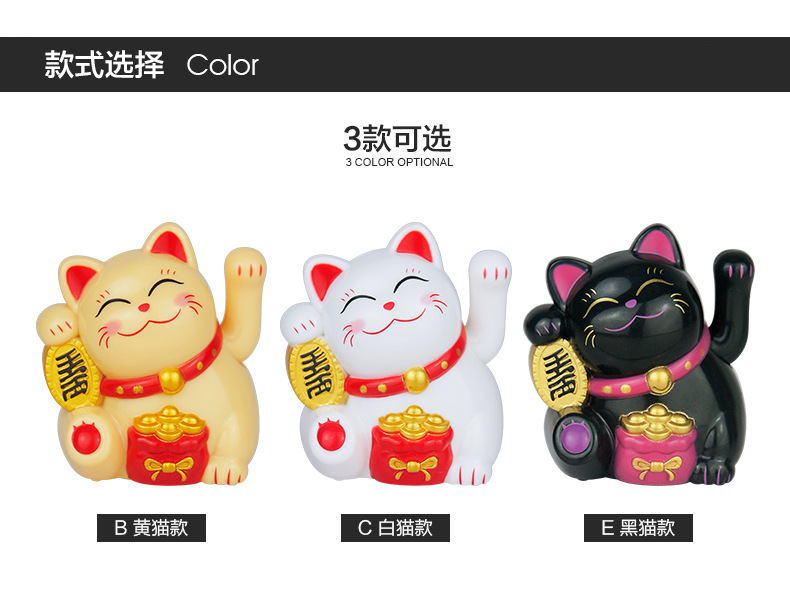 2寸太阳能招财猫自动招手发财猫家居桌面收银前台创意汽车摆件厂