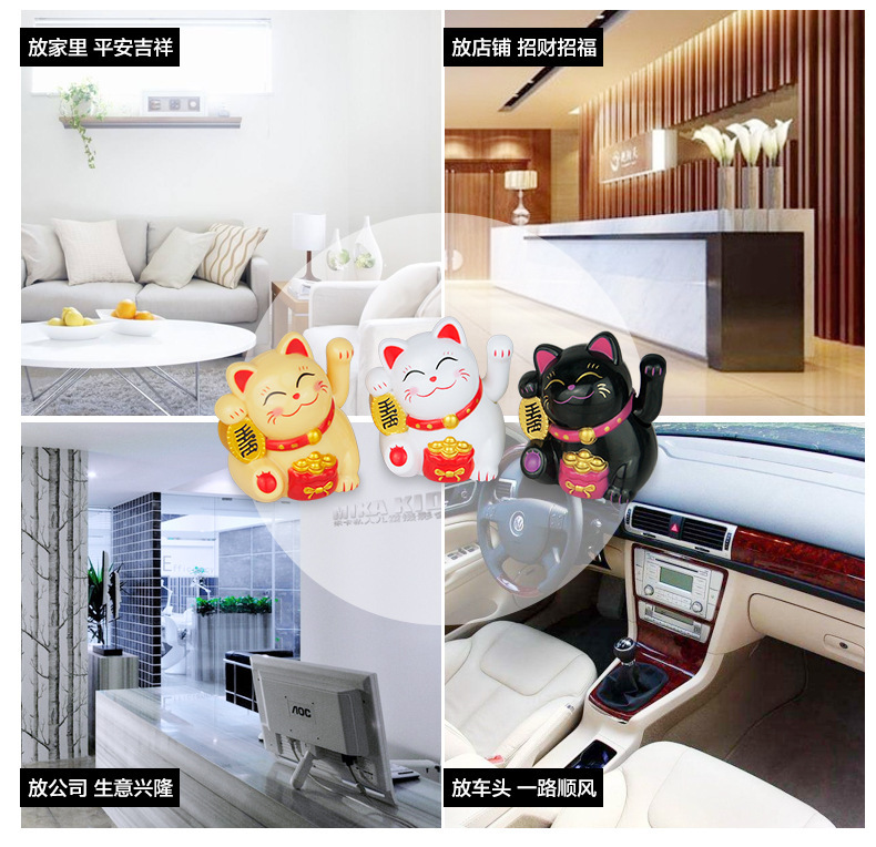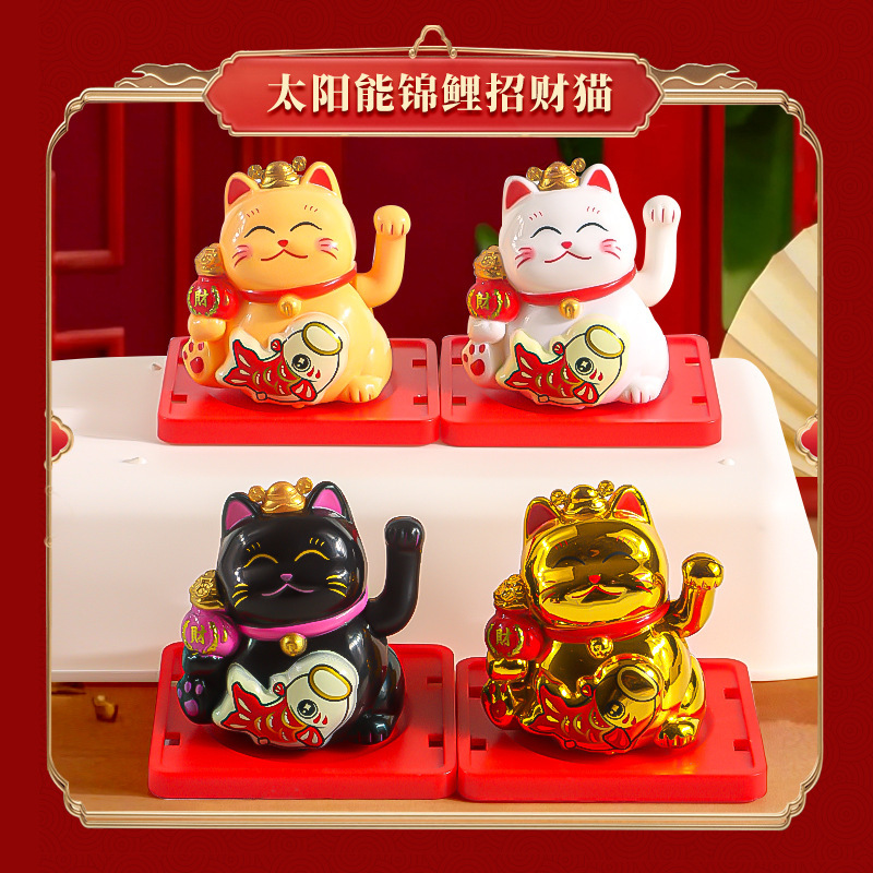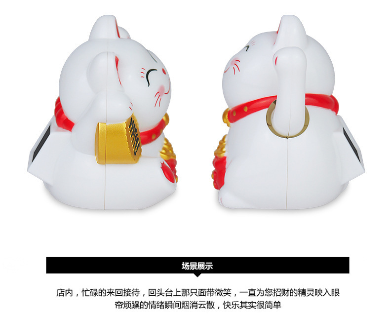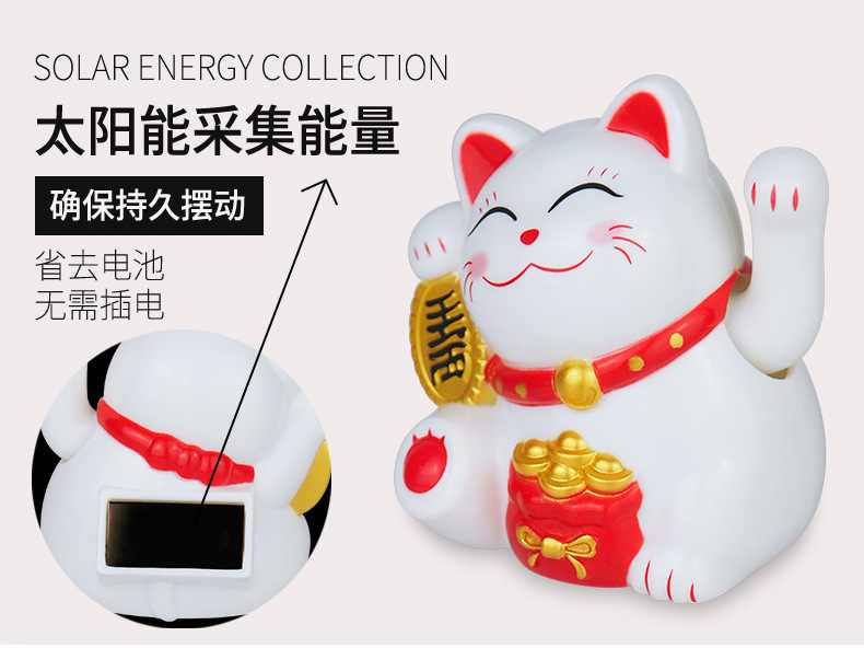 新款太阳能招财猫自动招手发财猫家居桌面装饰收银前台汽车摆件厂