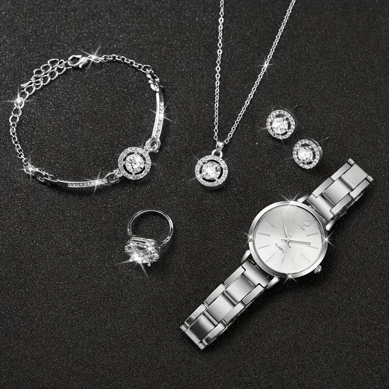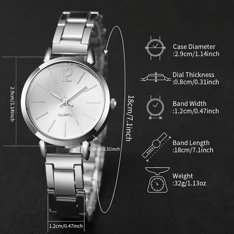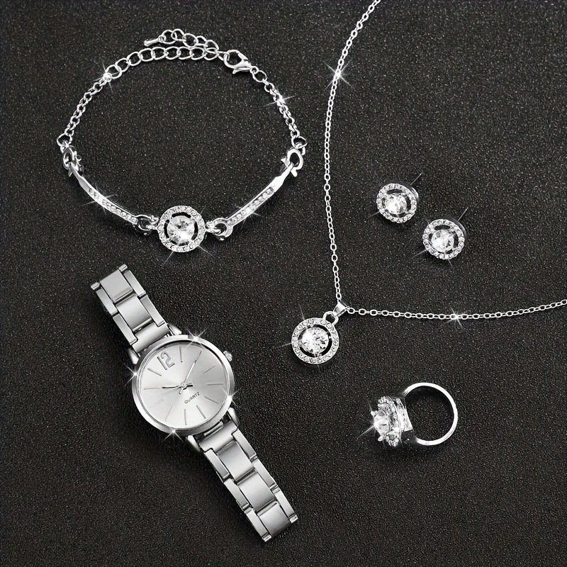 2023 外国貿易越境売れ筋新スモールダイヤルシルバーコンパクトスチールベルト 5 点セットレディースジュエリークォーツ
