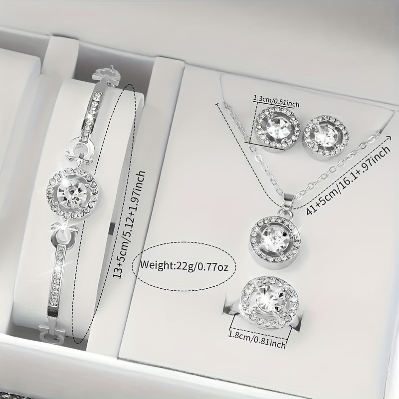 ダイヤモンド付きダブルハートジュエリーセット、カジュアルで多用途なレディース5点ギフトボックスセット、クォーツ腕時計、軽くて豪華なレディースギフトボックス